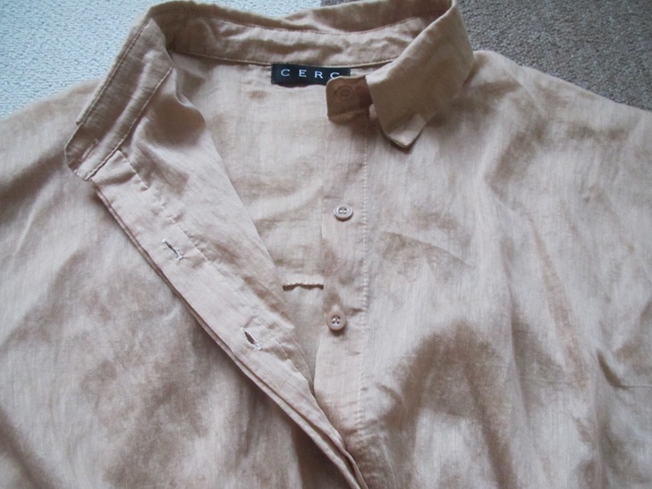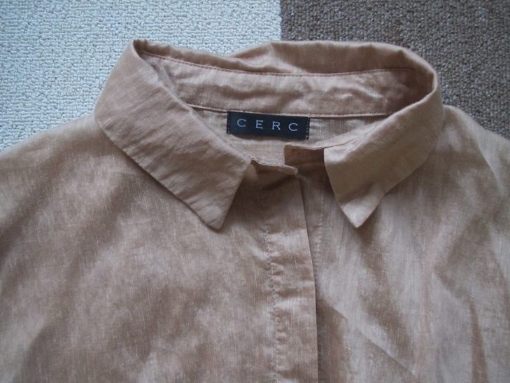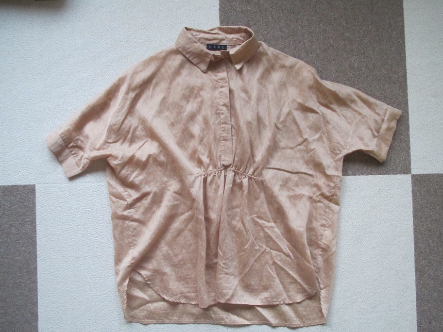 CERC★半袖シアーシャツ★ゴールド系ブラウン★ゆったり★レディースF★シアーチュニック★中古★送198