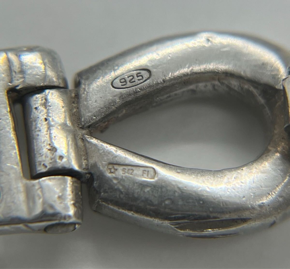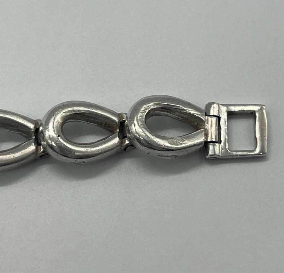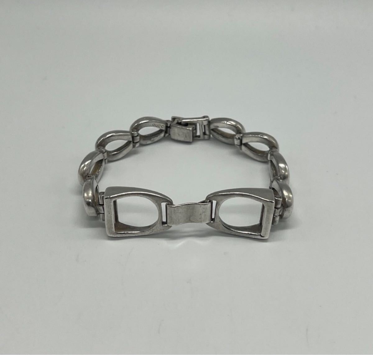 トップにはホースビットを彷彿とさせるデザインにチェーンには幅のある輪っかのリンクが使用されており、オールドグッチの雰囲気が漂う存在感のあるお品物でございます。