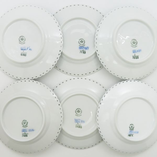 ロイヤルコペンハーゲン プレート■ブルーフルーテッド フルレース Royal Copenhagen デザートプレート 15cm 洋食器 6枚セット 1級品