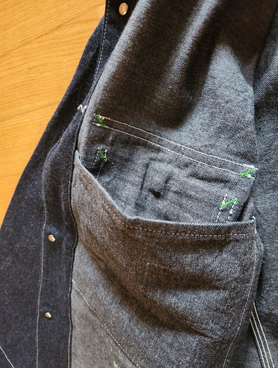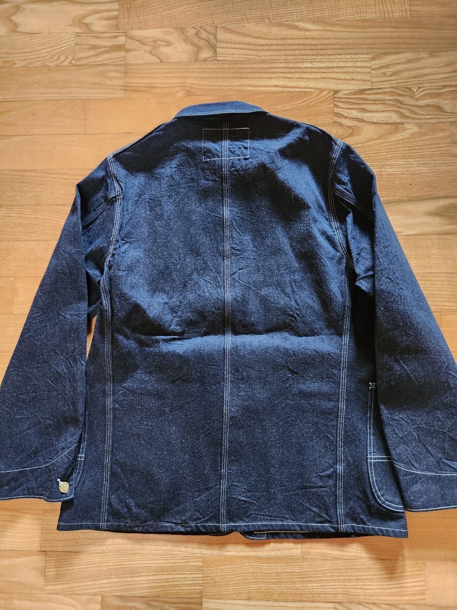 ◎特徴 長年定番アイテムとして展開していた11オンスのブルーデニム生地のワークコートをリニューアルしてリリース。シンプルながらガチャポケ仕様など、ヴィンテージのディテールが備わった第二次世界大戦後のストアブランド系のワークコートとなっている。台襟が省略される前のモデルで、右胸はフラップポケット、左胸は3in1ポケット仕様。大型の腰ポケットは当て布付きで、内ポケットも右胸に装備している。肩や脇、袖ぐりなどは3本針巻縫いで頑丈な作りです。