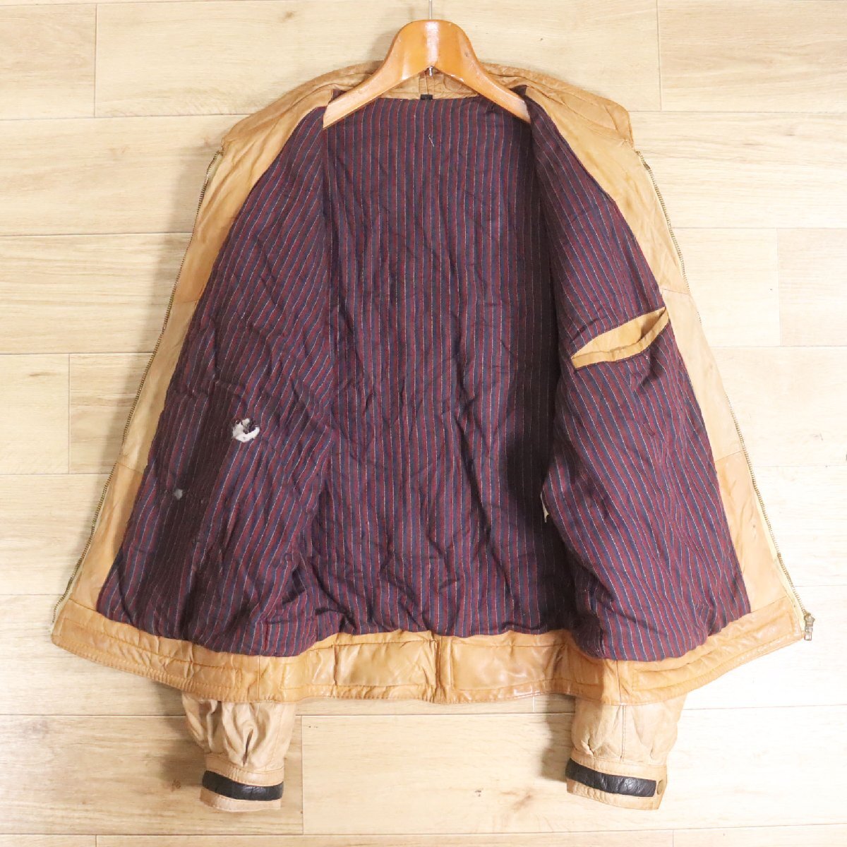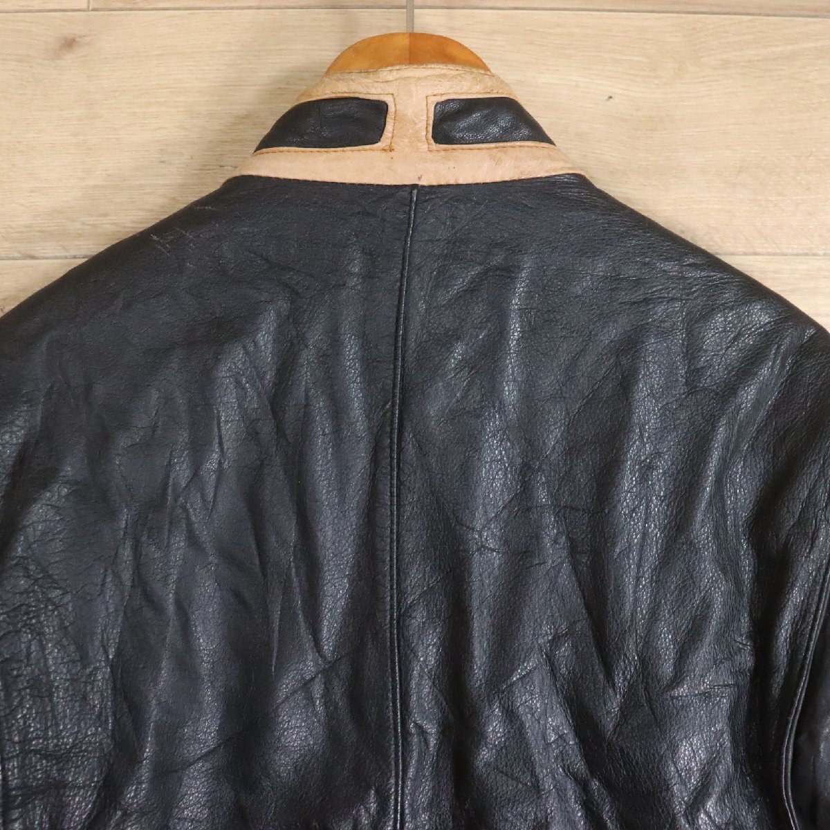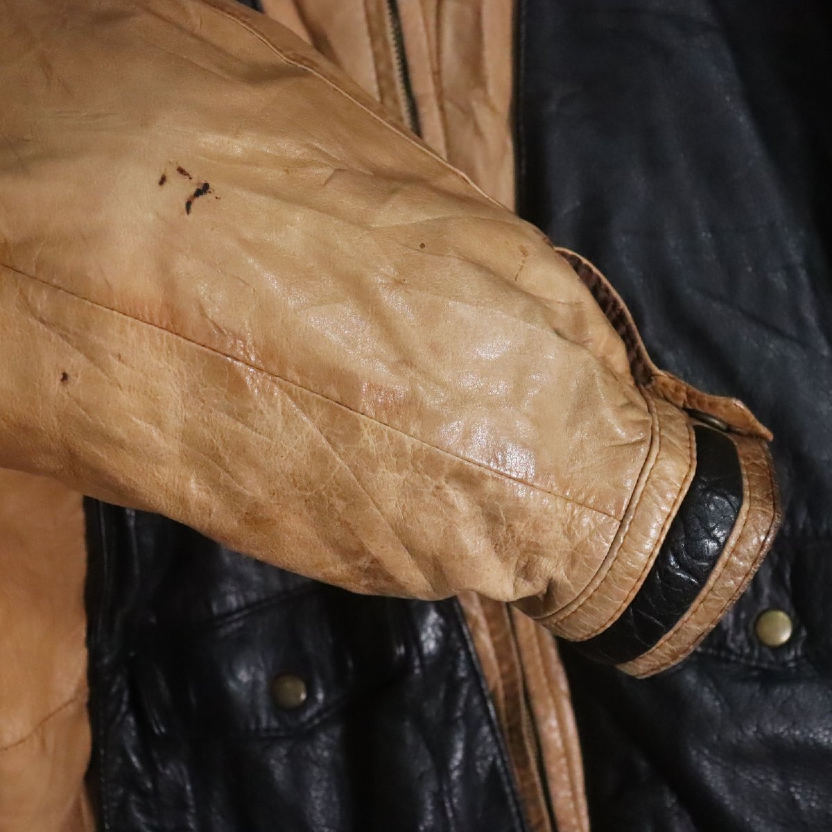 F8S/Y6.16-1 ユーロ古着 レザージャケット 本革 スタンドカラー レザーブルゾン ライダース レイヤードスタイル L ヴィンテージ