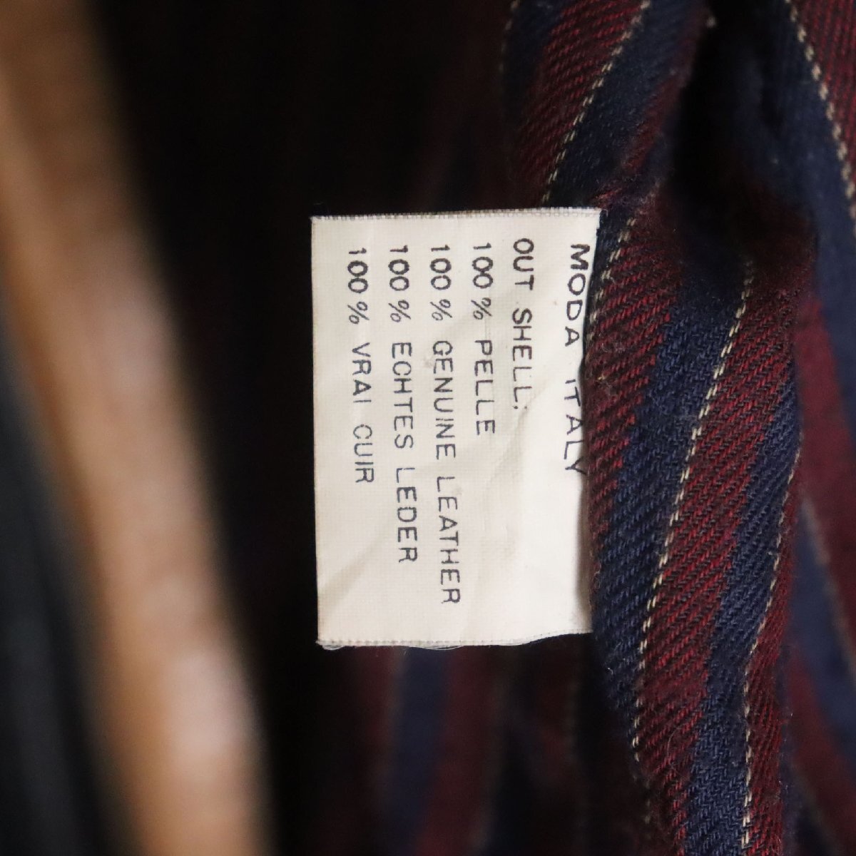 中古品です。使用感があります。各所に擦れと汚れと色むら、裏地に破れ、左右ポケット袋布にリペア跡があります。
