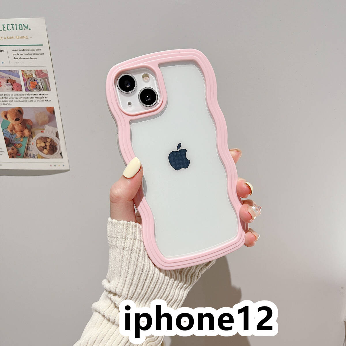 iphone12ケース カーバー TPU 可愛い 波型 お洒落 軽量 ケース 耐衝撃高品質ピンク