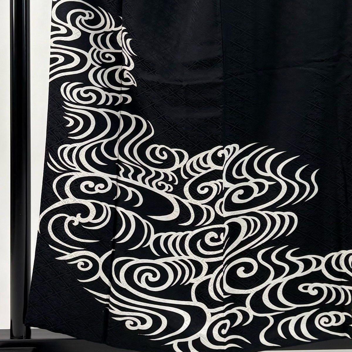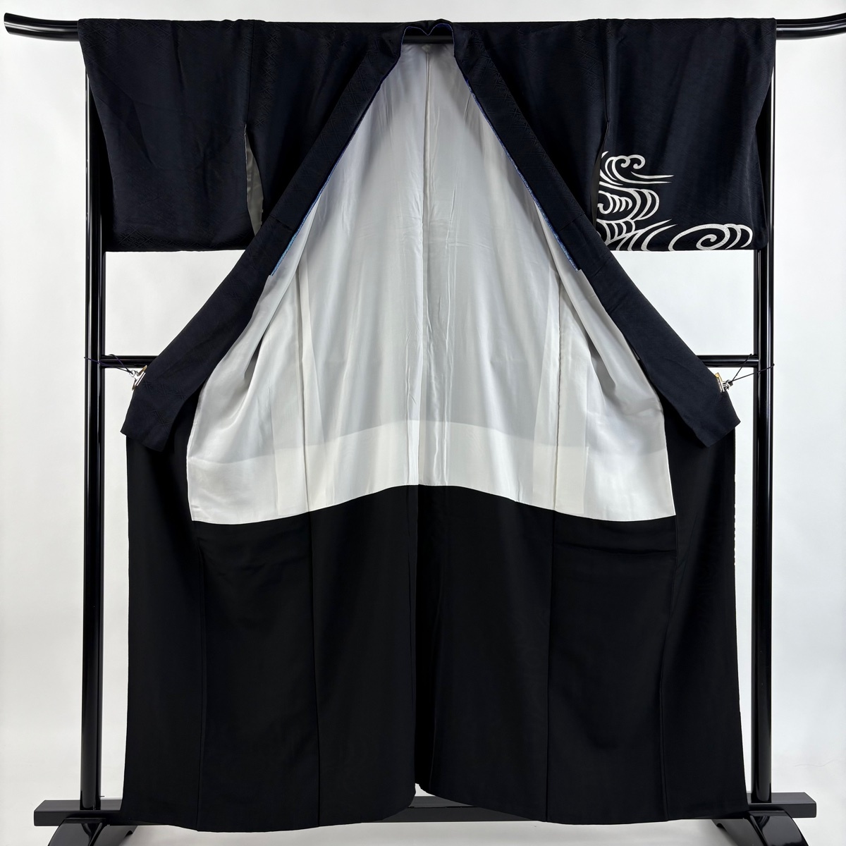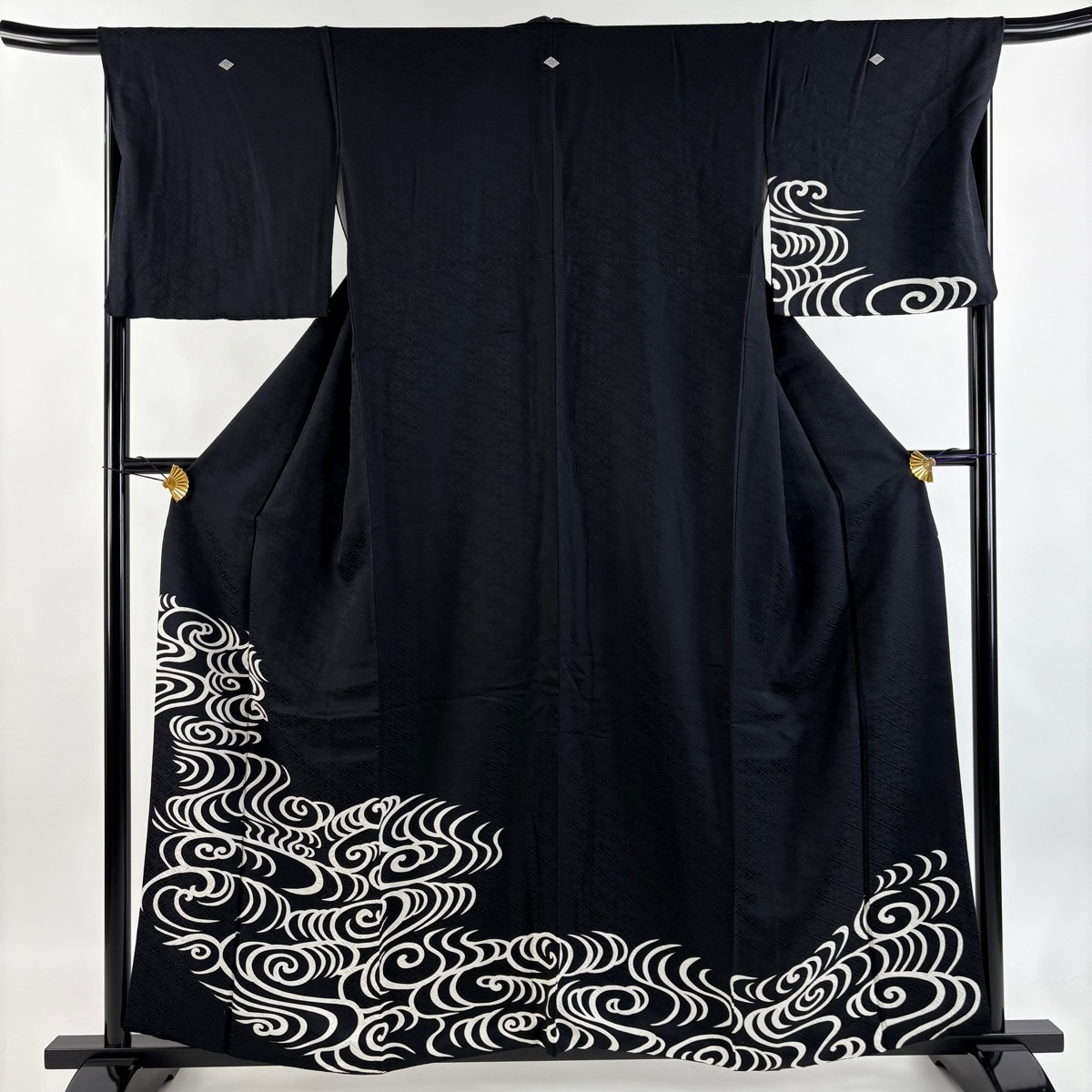 | 付下げ 秀品 流水 地紋 黒 袷 身丈158 裄丈68.5 L 正絹 【中古】 |