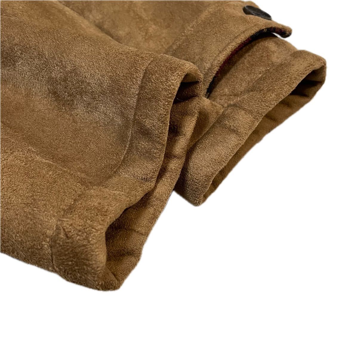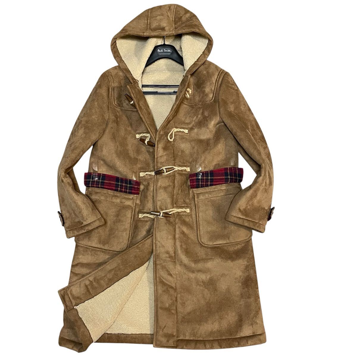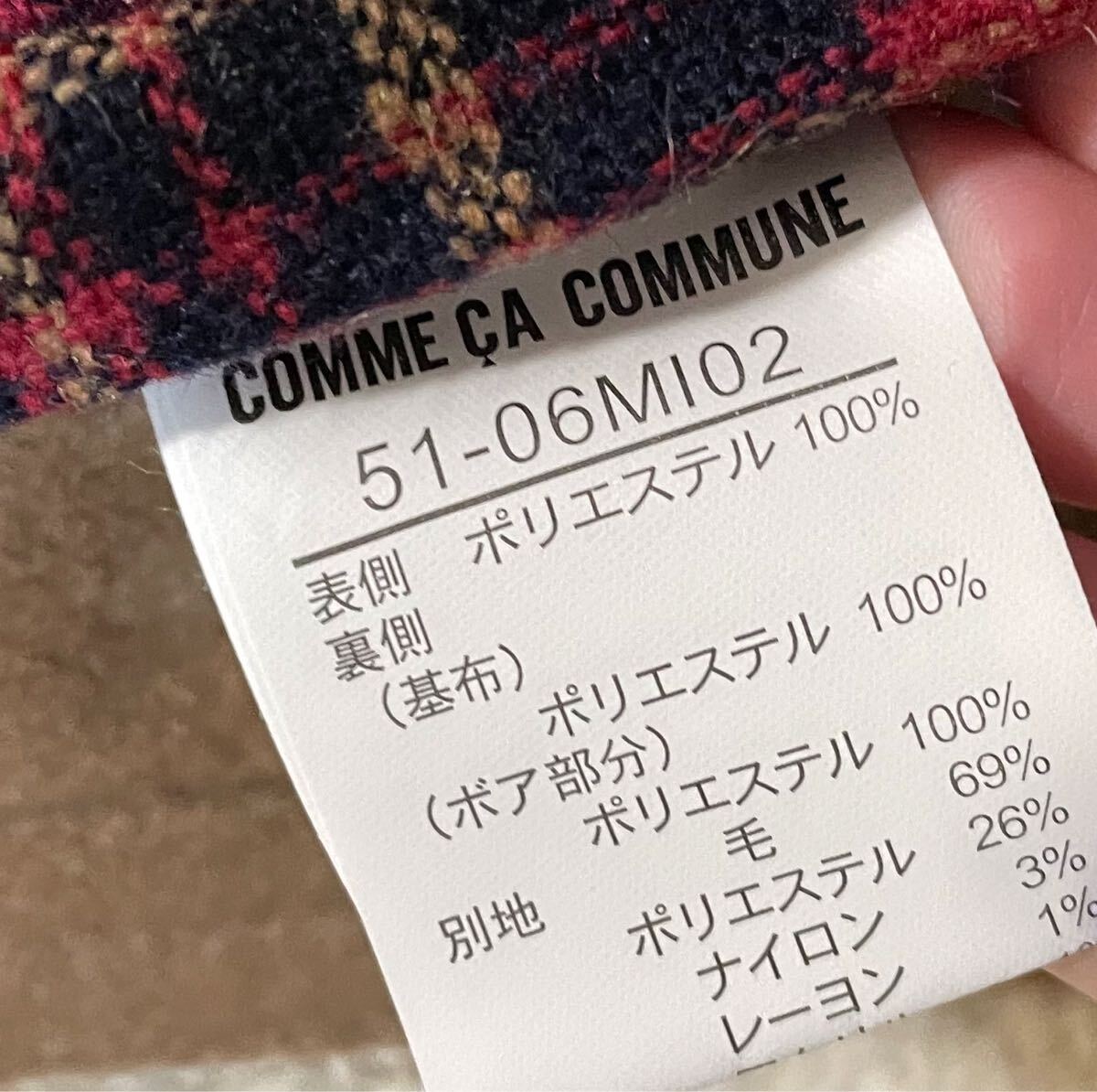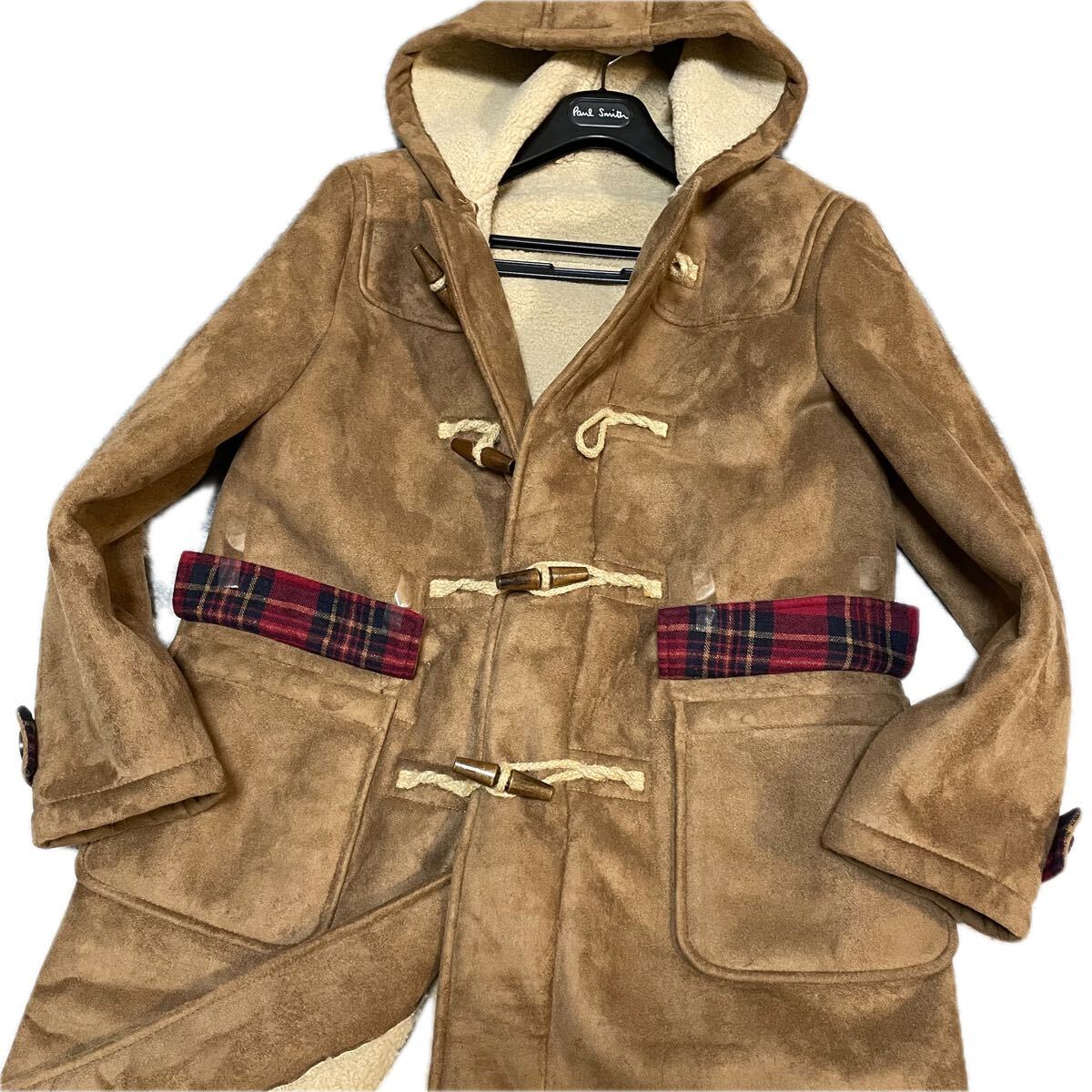 希少デザイン◆COMME CA コムサ ムートンコート ジャケット M ボア ファー 毛皮 極暖 肉厚 赤 チェック キャメル ブラウン ロング丈