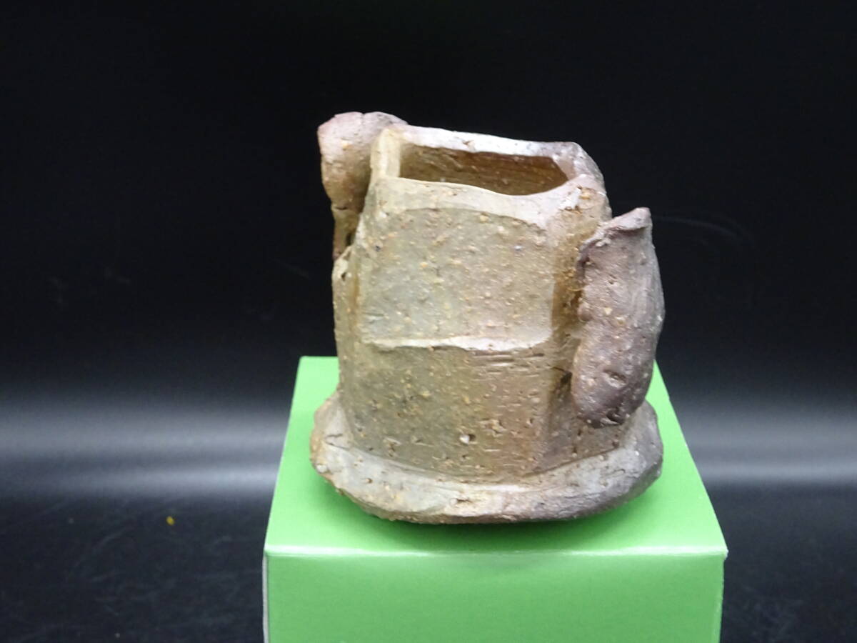 備前焼 人気実力作家 竹内靖之(師:人間国宝山本陶秀)★備前創作面取酒器 紙箱、陶歴付  酒器 茶碗 壺 茶道具