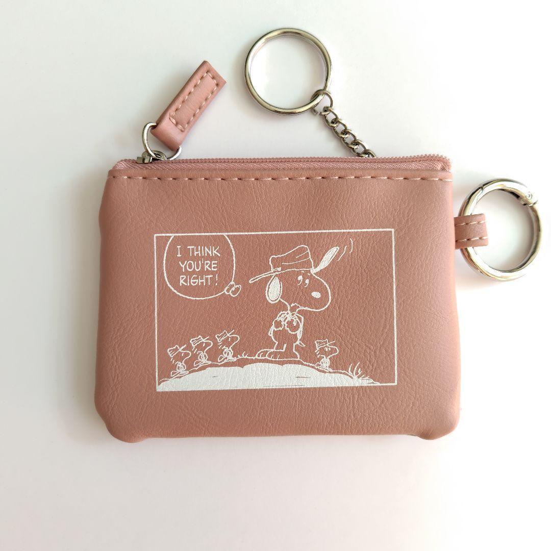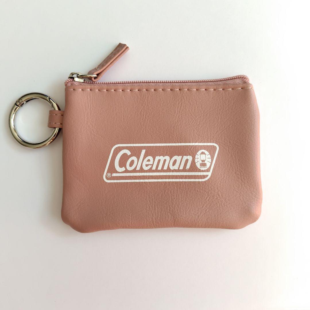 スヌーピーとコールマンのロゴがデザインされたピンクのコインケース。