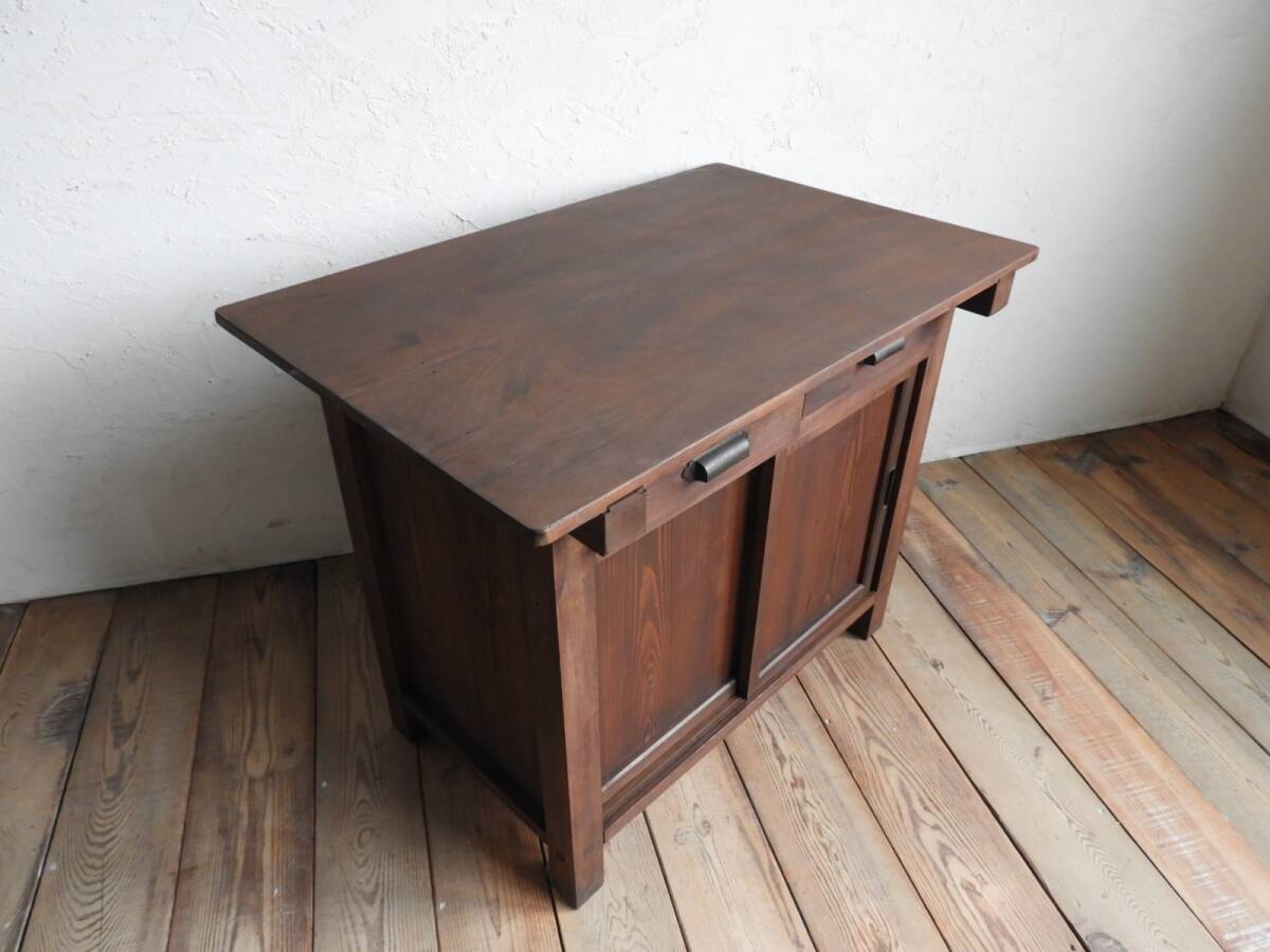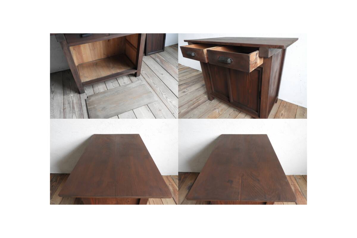 ヴィンテージ 収納付のテーブル デスク 引き出し カウンター 収納棚 展示台 陳列台 古家具 書斎 アトリエ レトロ アンティーク 020 [M]