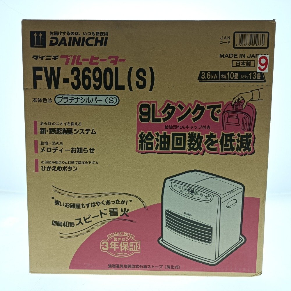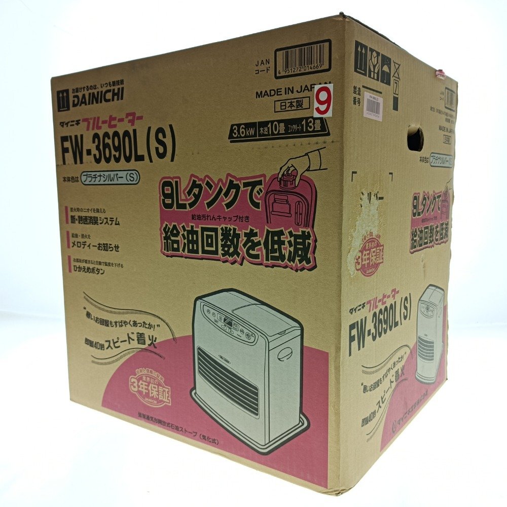 | 未使用 DAINICHI ダイニチ工業 石油ファンヒーター ブルーヒーター FW-3690L シルバー タンク容量 9L 灯油 10~13畳 暖房機器 中古 |