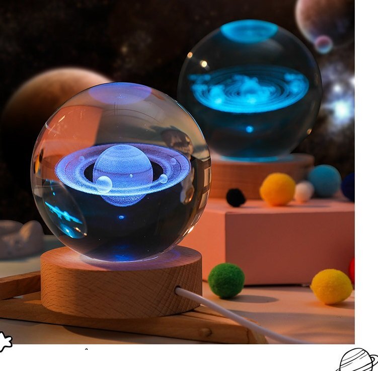 クリスタルライト 太陽系 6cm オブジェ 室内 雑貨 パターン 立方体 透明 上品 結婚記念 卒業祝い 子供 n974