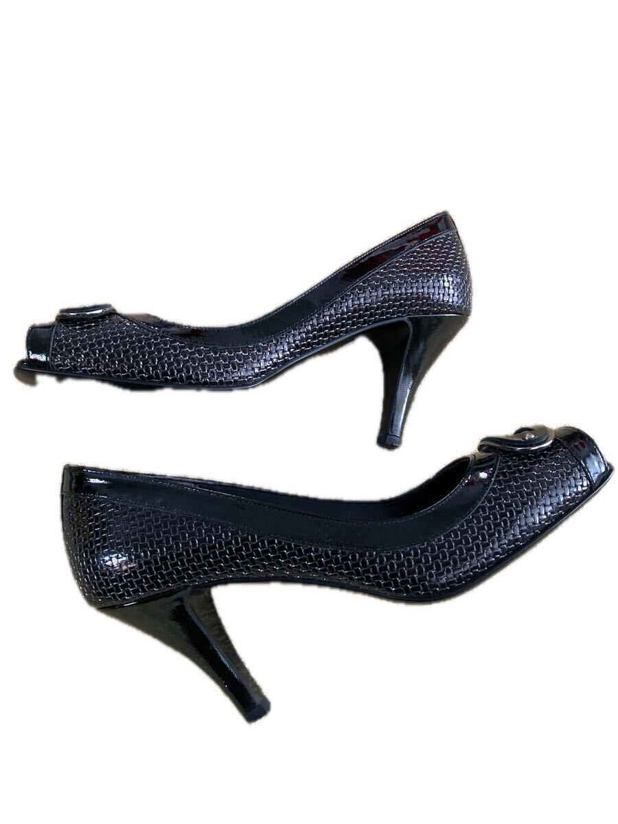 数年前に購入した 1度使用した品物! 全体的にとても 綺麗な状態です ヒール部分 7.5cm エナメル光沢感が 大変お洒落