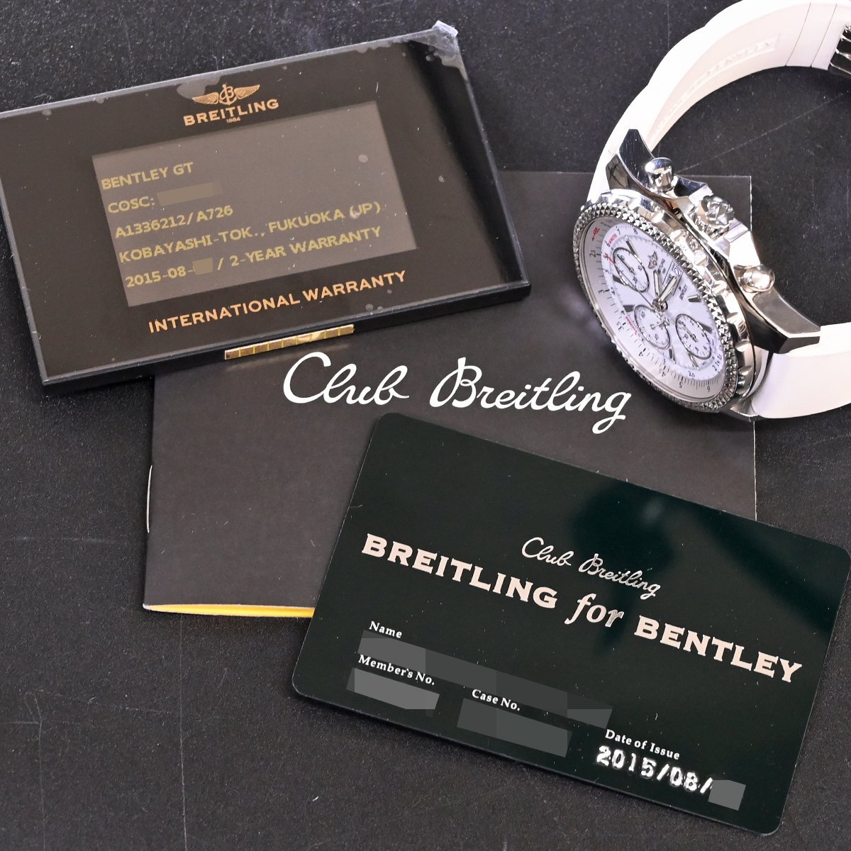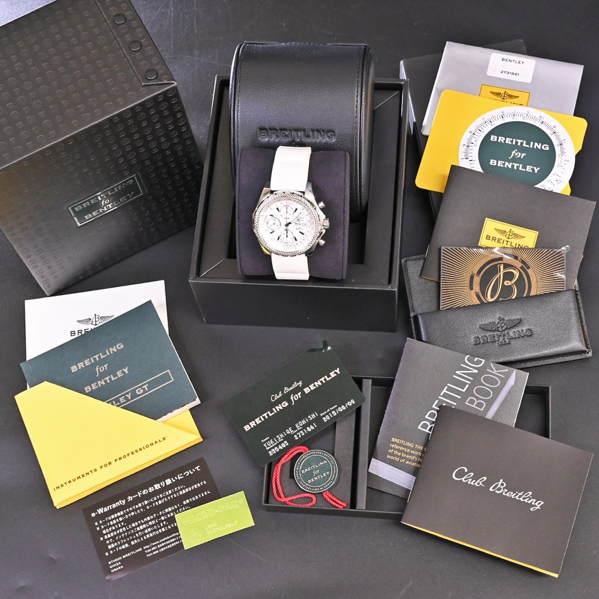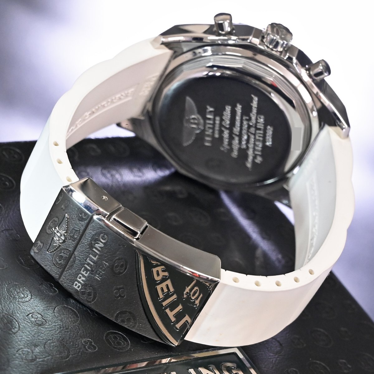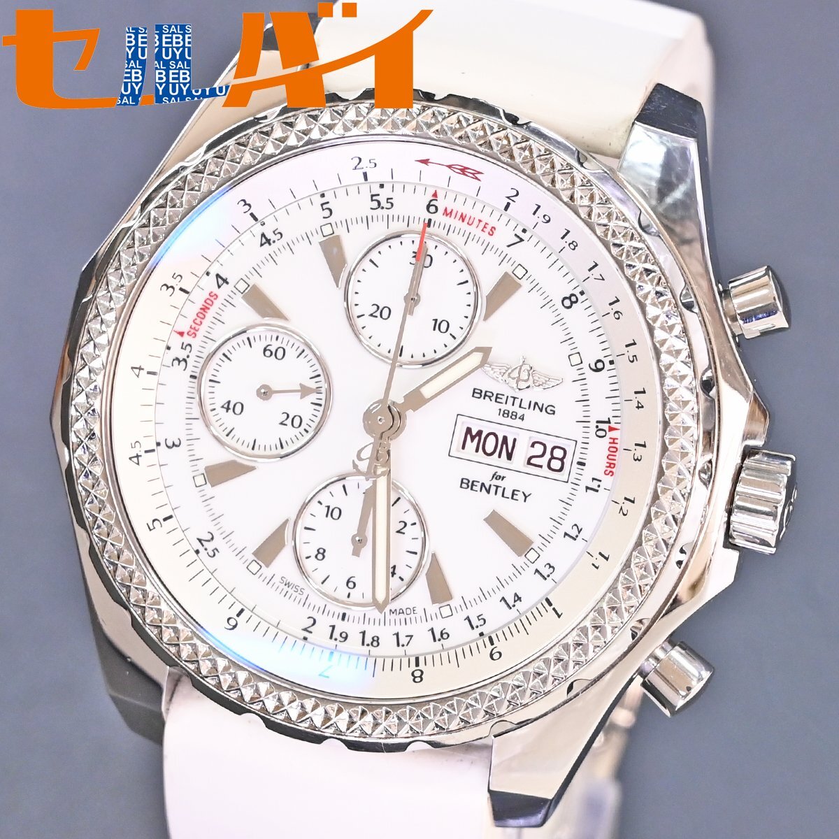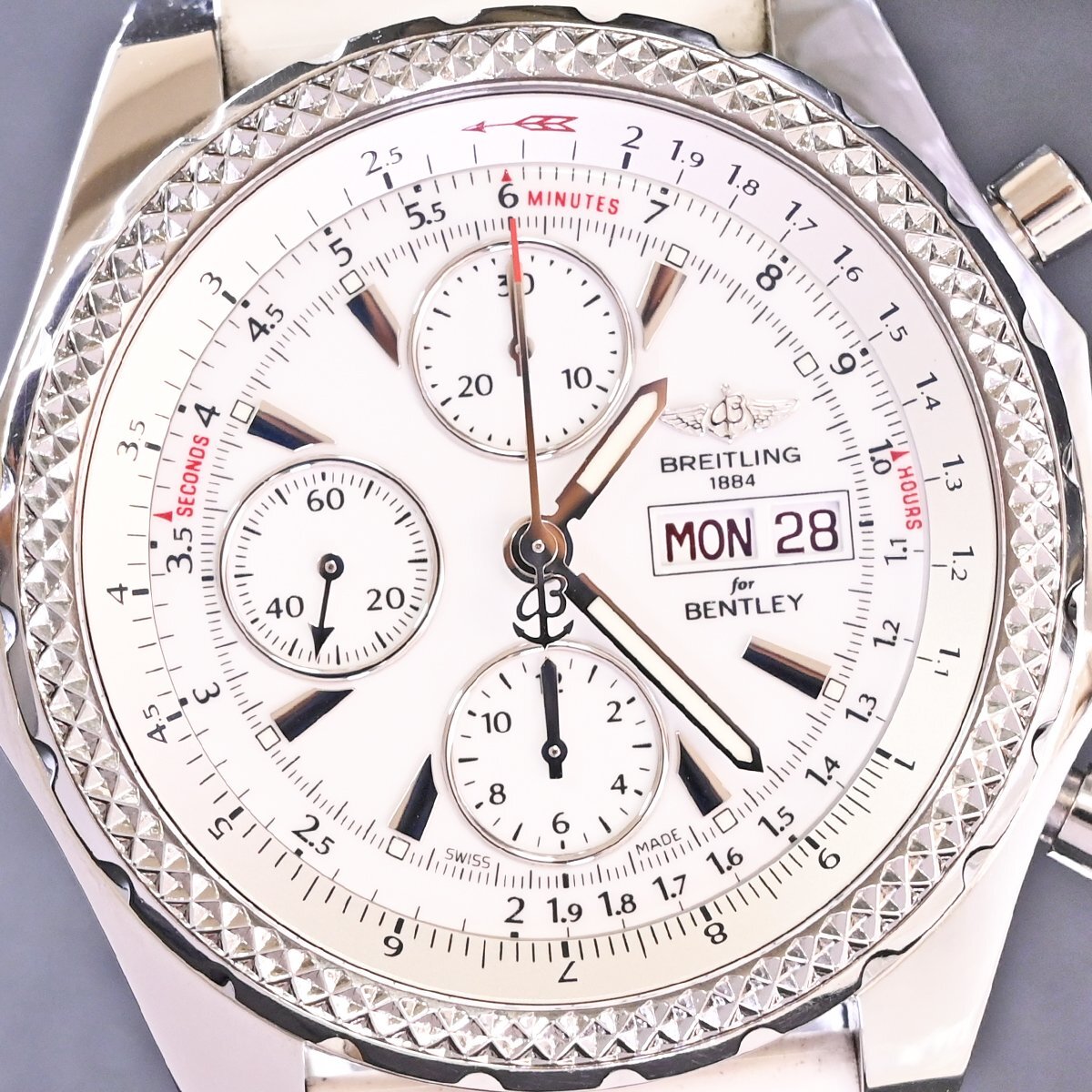 ブライトリングのA13362 ベントレーGT ホワイト ラバーです。 英国ラグジュアリーとスイス精密工学が融合した、BREITLING for BENTLEY GT。 搭載キャリバーは信頼のCal.13自動巻クロノグラフ。 ポリッシュ仕上げのケースと立体的なバーインデックス、そしてベントレーのメッシュグリルを想起させる文字盤ディテールが、他のクロノグラフとは一線を画します。 モータースピリットを感じさせる力強さと、ホワイトトーンの上品さが共存した一本。 街でもサーキットでも、**「走るためのエレガンス」**を体現するモデルです。 市場流通量の圧倒的に少ないモデルなのでお探しの方も非常に多いかと思います。 ※基本動作確認済。 |