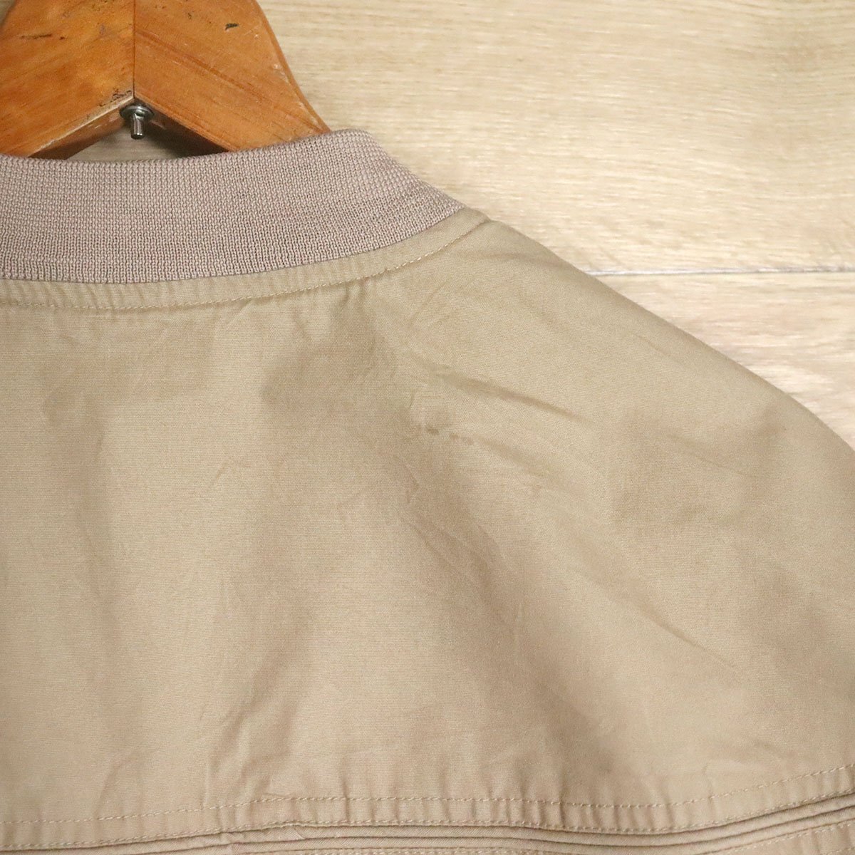 中古品です。使用感があります。フロント下付近と右胸と両袖に薄汚れがありますが、他に大きなダメージはありません。