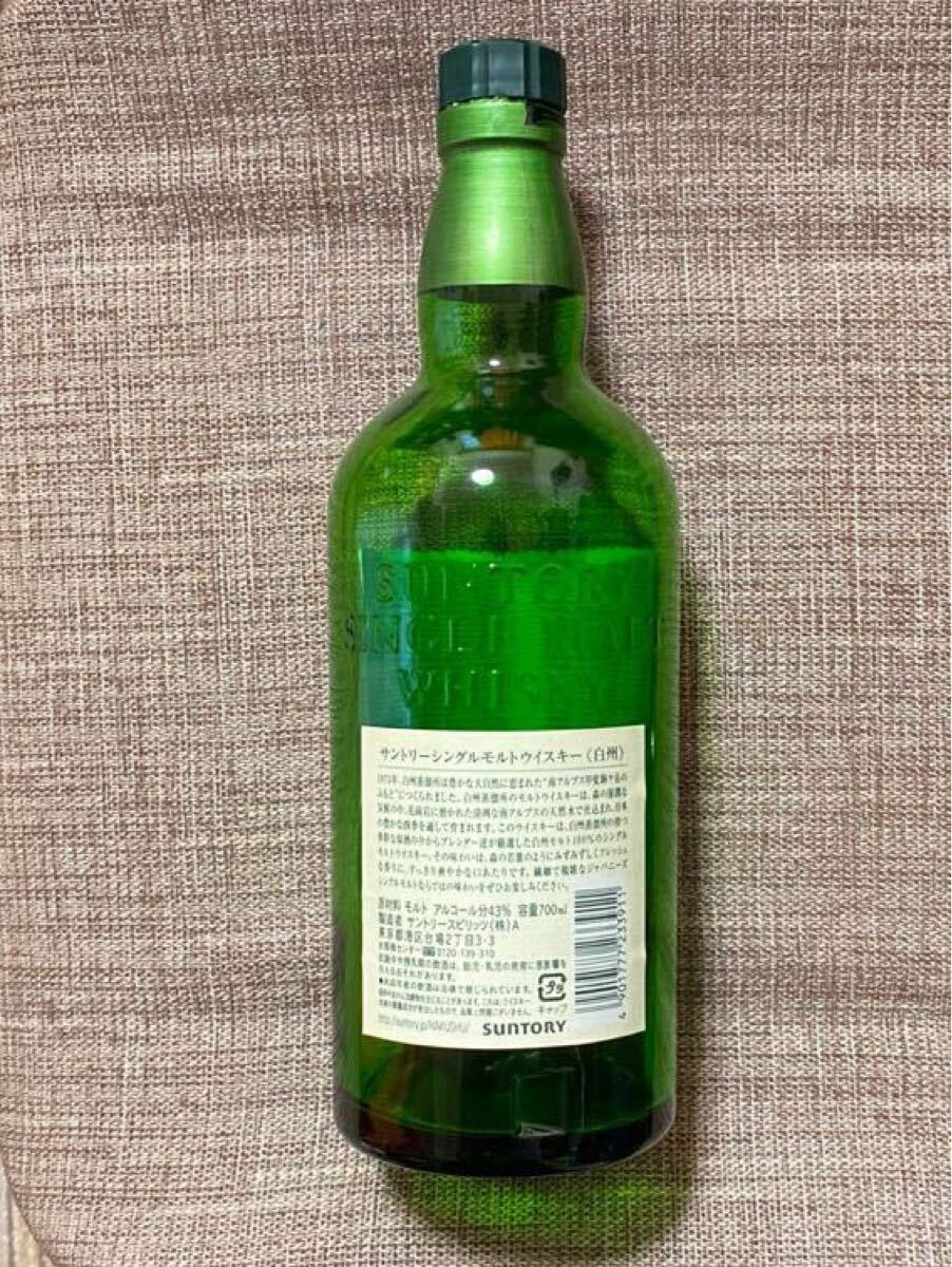 白州シングルモルトウィスキー700mlの空ボトルです。高さ25.5cm、直径8cm。送料無料