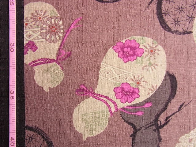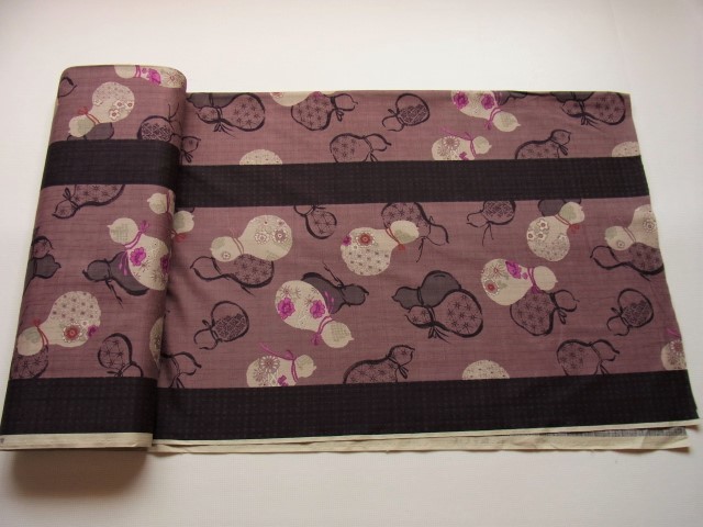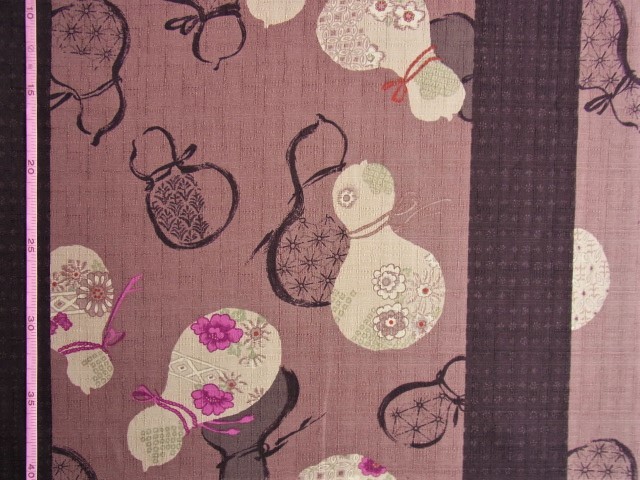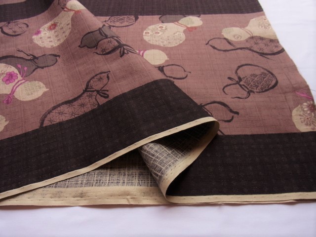和柄スラブクロス【縞に瓢箪文様(茶系)】 [NE1227-B]