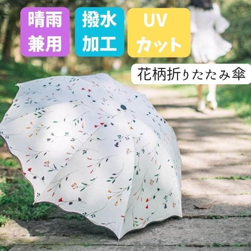 繊細な小花柄と、縁の波打つデザインがとても可愛らしい折りたたみ傘です♪ 軽量&コンパクト設計なので、バッグに入れて持ち運びもラクラク。急な雨や強い日差しもこれ1本で安心です!
