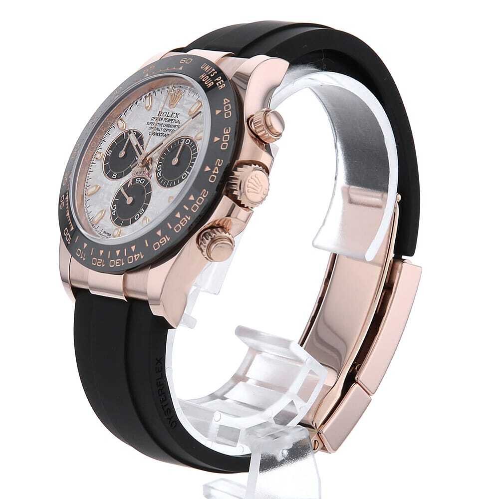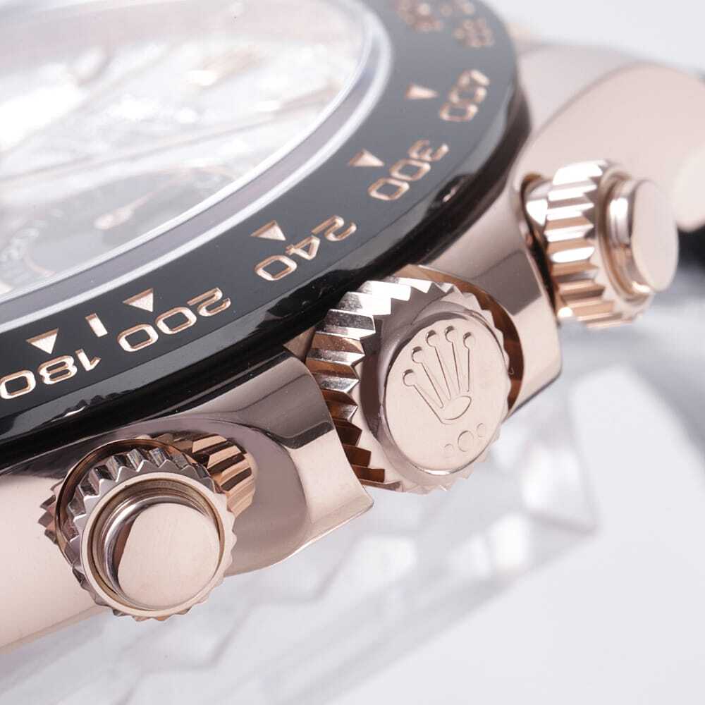 モデル情報 | バーゼルワールド2011で発表された116515LN。数々の時計雑誌の表紙を飾っていたモデルになるので、目にしたことがある人も多いのではないでしょうか。K18エバーローズゴールド製のケースに、モノブロック(一体構造)のブラックセラクロムベゼルを採用。上質なセラミックを使用することで耐蝕性、耐傷性に優れ、色褪せを防ぐことに成功しています。また、ベゼルの目盛りにピンクゴールドの微粒子層を蒸着し、PVD加工することで高い視認性を実現しました。 |