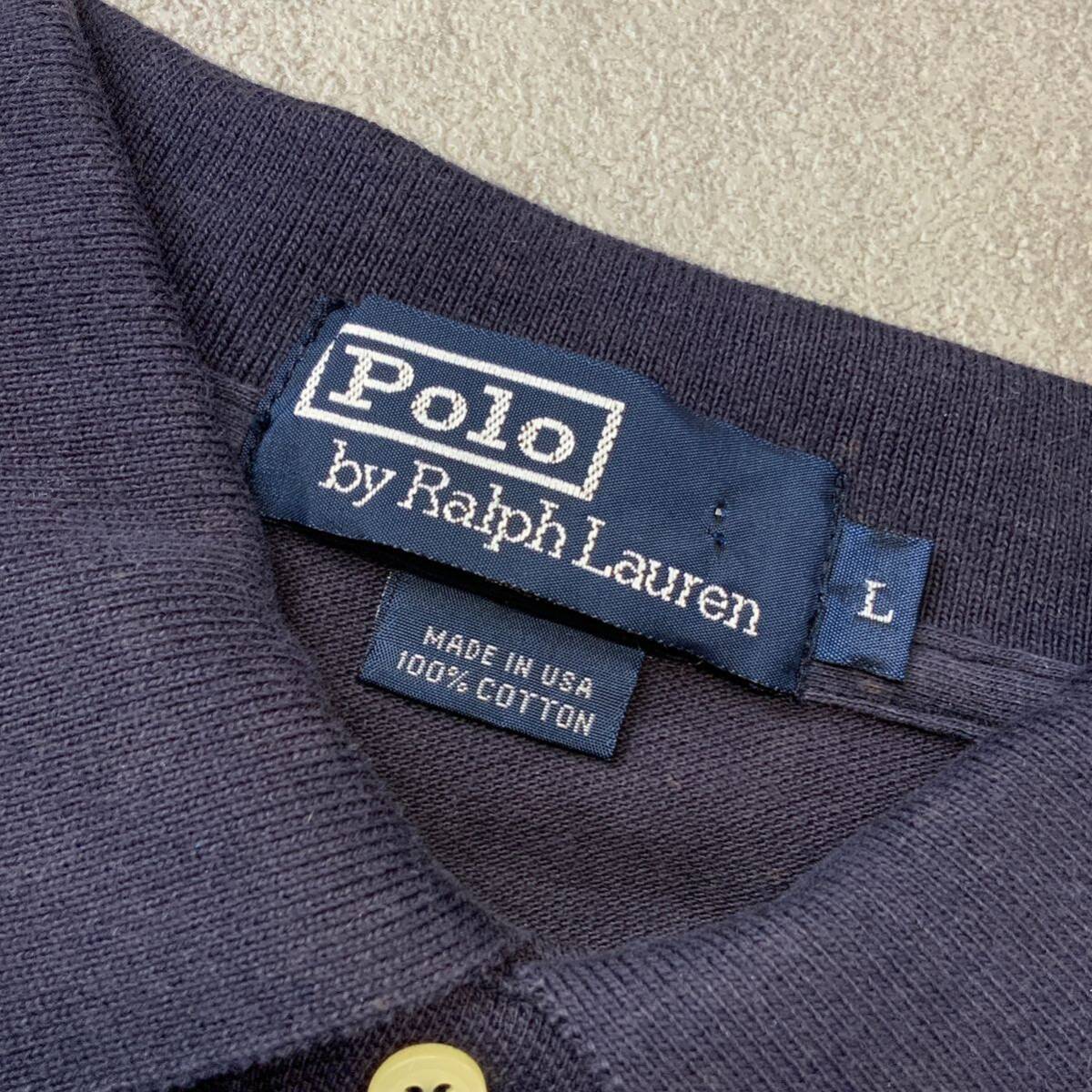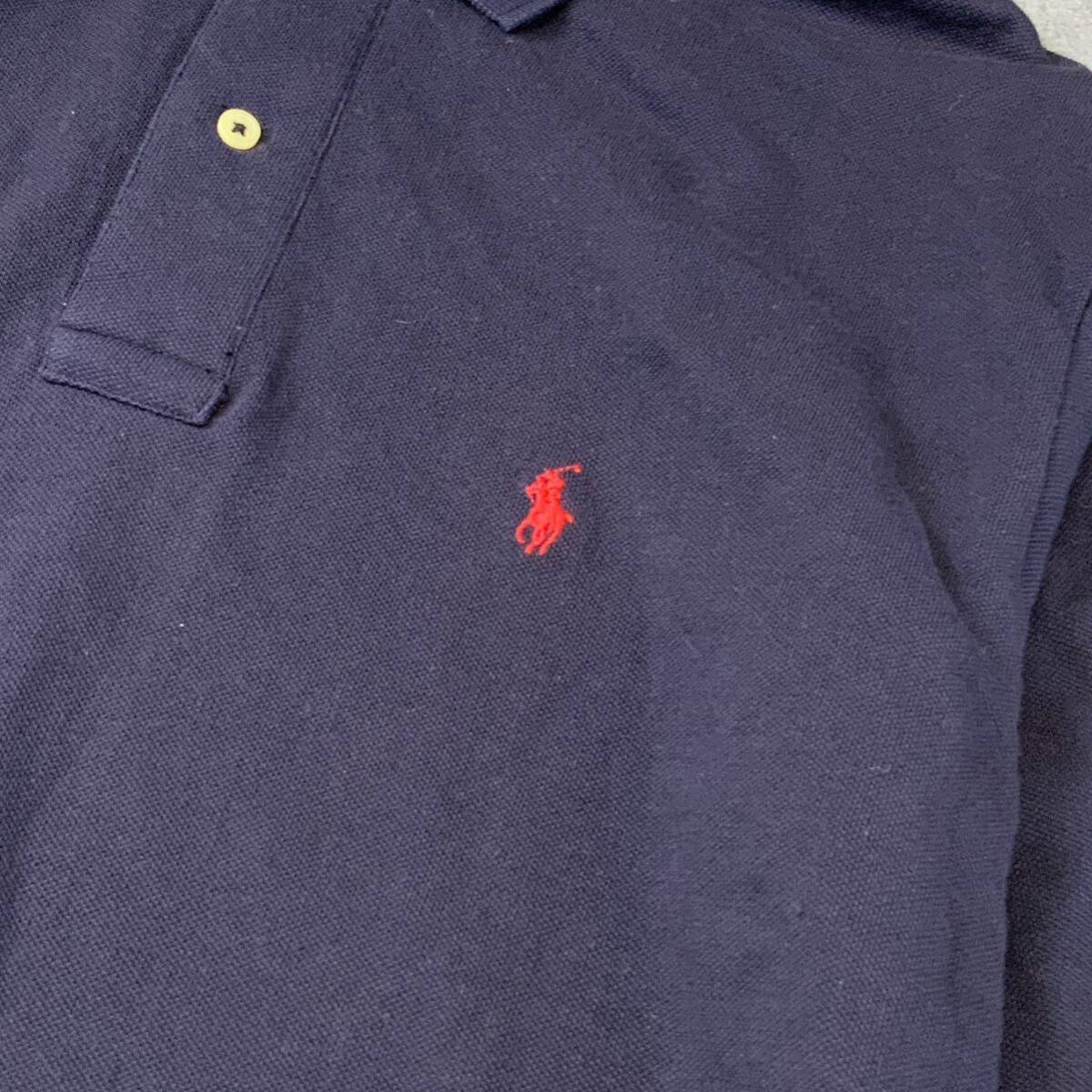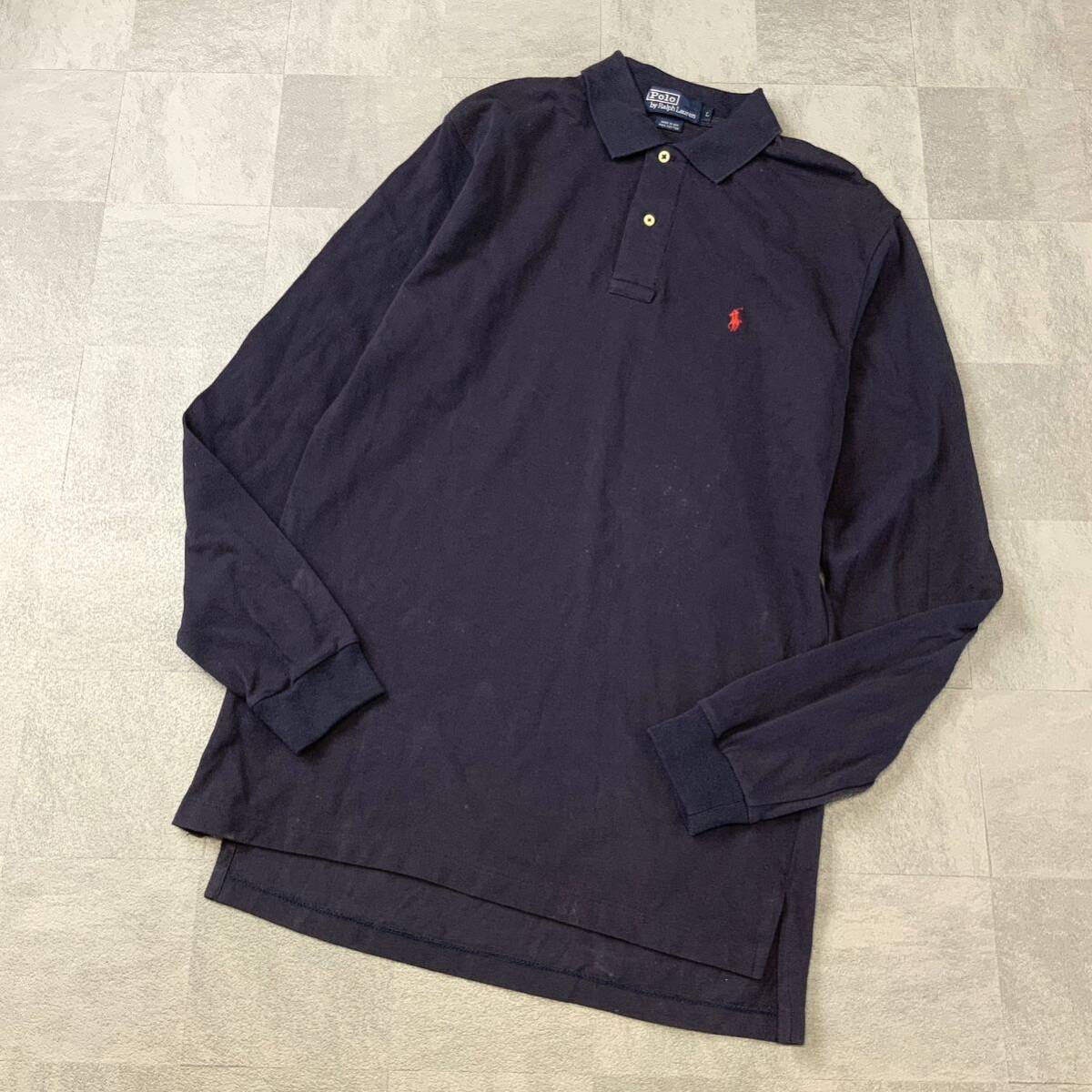 90‘s USA製 POLO by Ralph Lauren ポロ ラルフローレン 鹿子 長袖 ポロシャツ メンズ Lサイズ ネイビー レッド