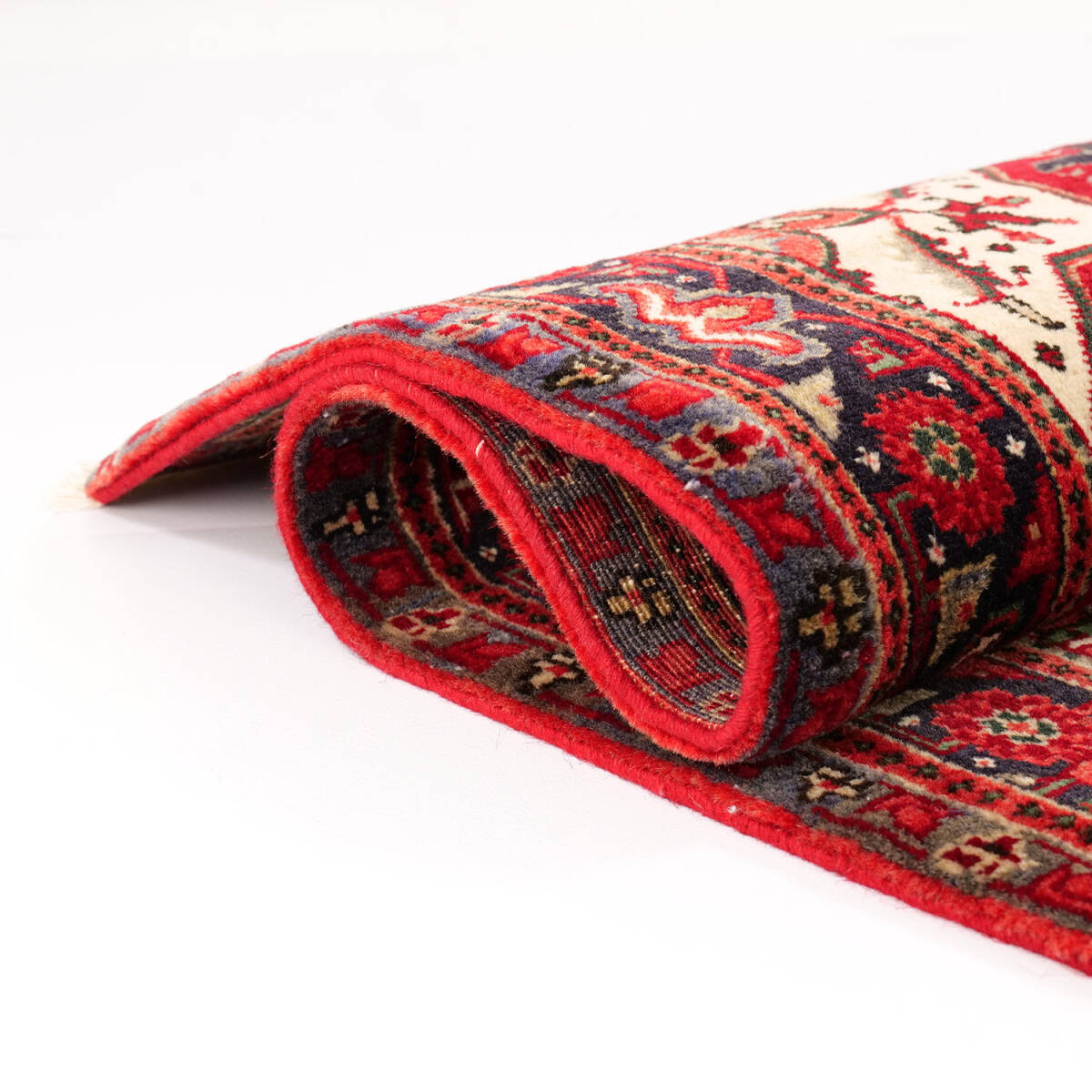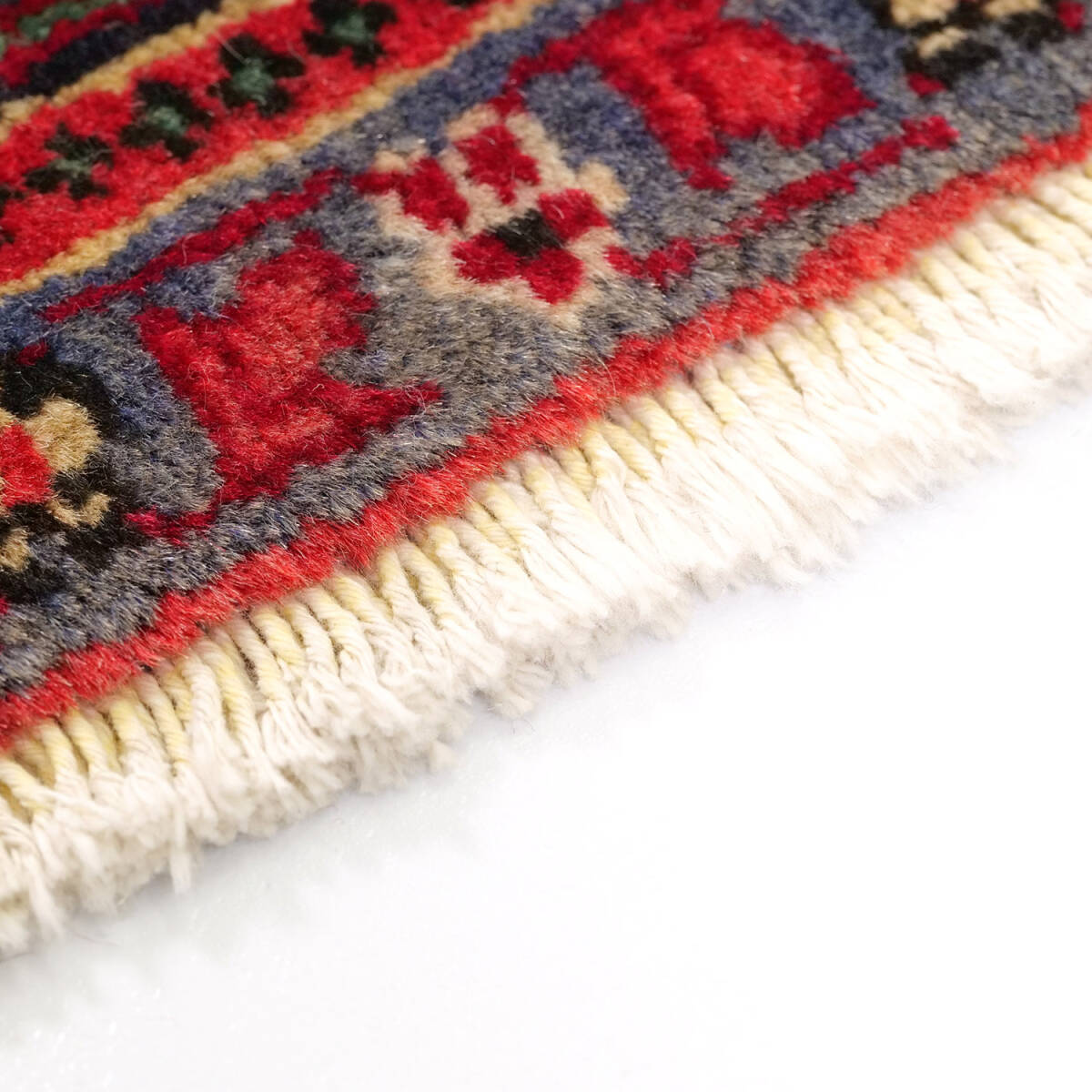 しっかりとした厚みと密なウールパイルにより、非常に重厚で安定感があります。伝統的なペルシャの構図と部族的な力強さが融合した一枚で、リビングや玄関の主役としてもおすすめです。