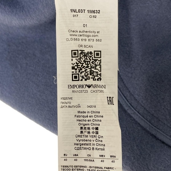 エンポリオアルマーニ EMPORIOARMANI サイズEU 40 - ネイビー レディース 長袖/冬 コート