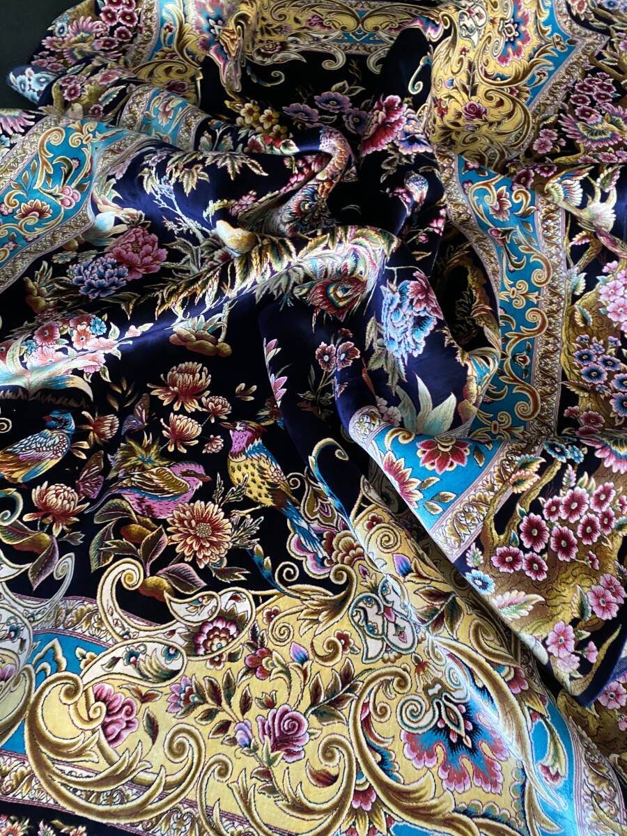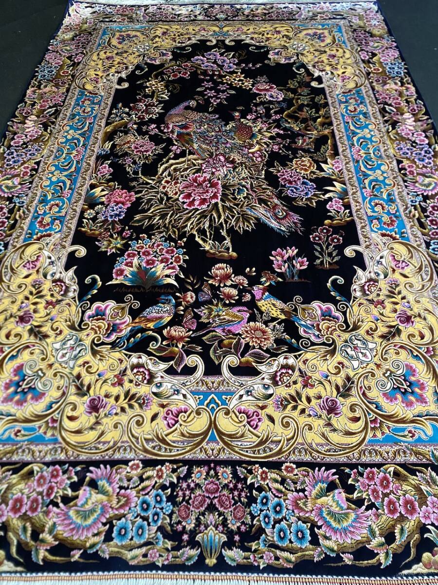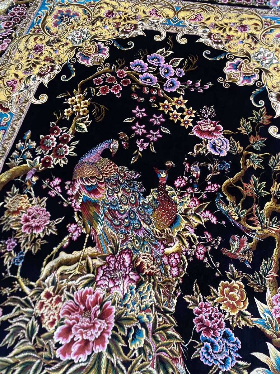 クム絨毯の歴史は1930年頃からと浅く、最初はウール絨毯を、後にシルク絨毯を織るようになりました。絹の産地としても有名なクムで、現在作られるほとんどの絨毯は100%シルク製です。