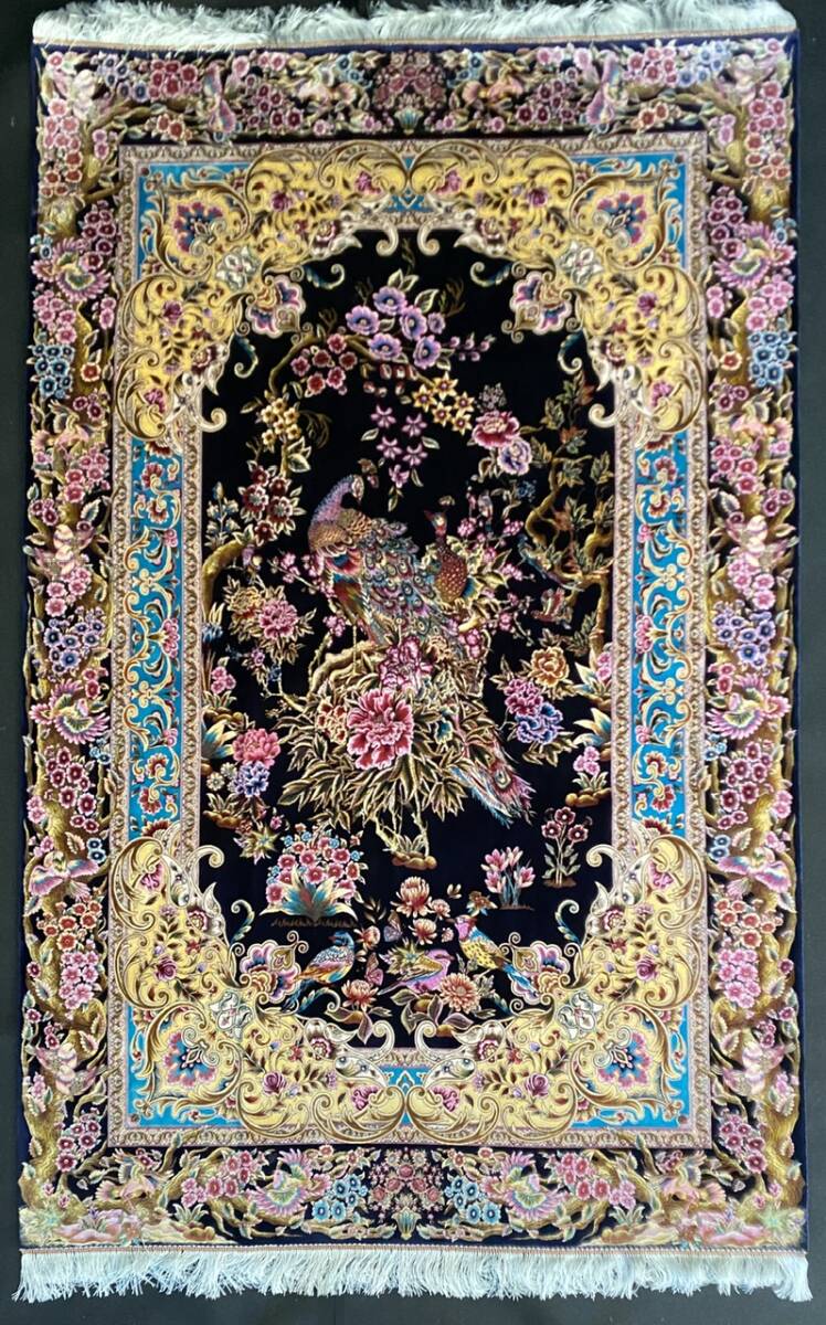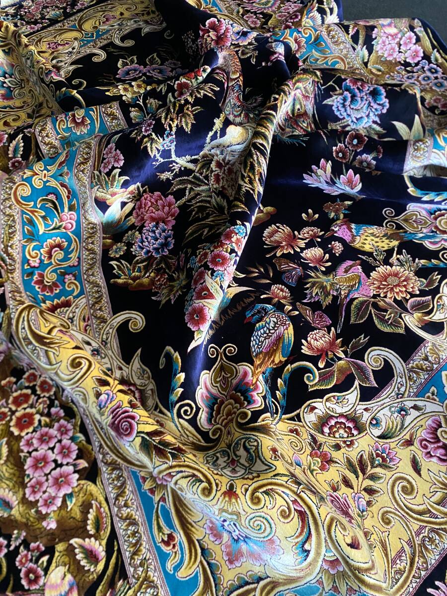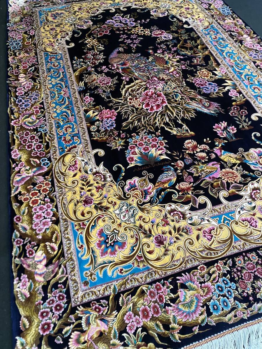 クム絨毯の歴史は1930年頃からと浅く、最初はウール絨毯を、後にシルク絨毯を織るようになりました。絹の産地としても有名なクムで、現在作られるほとんどの絨毯は100%シルク製です。