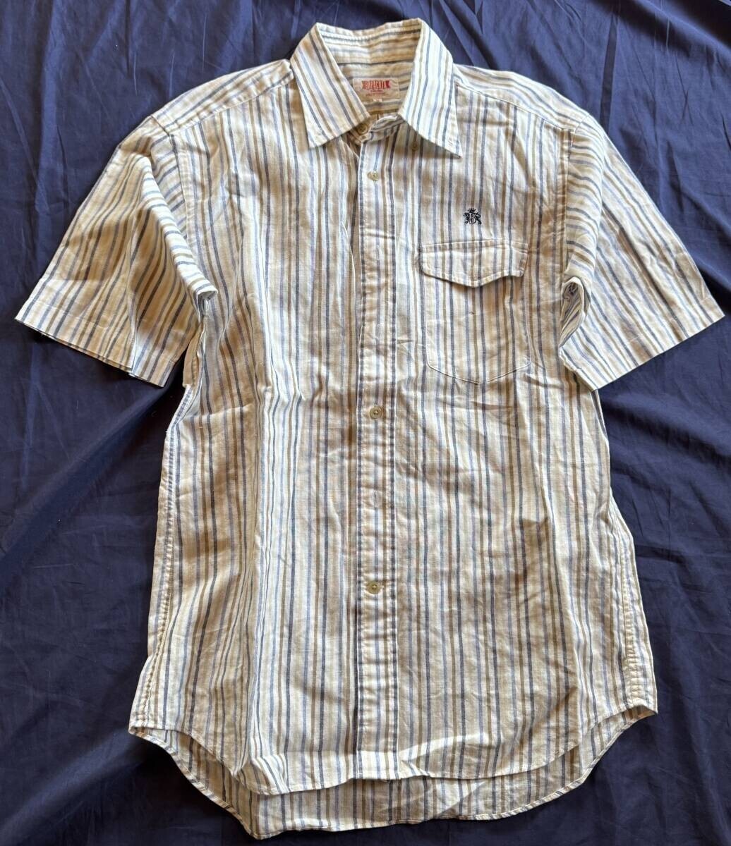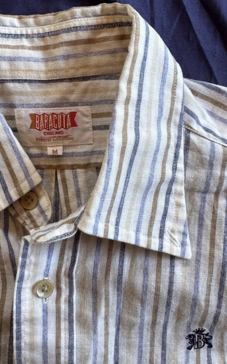 半袖シャツ メンズ 英国 BARAKUTA ストライプ 麻混 ヘンプ 高級タイプ