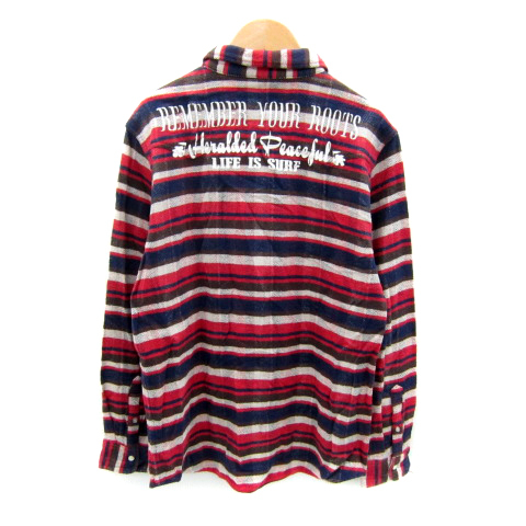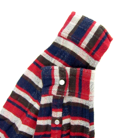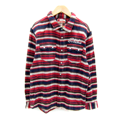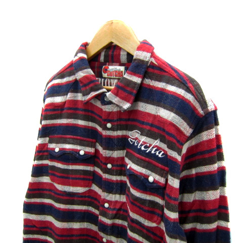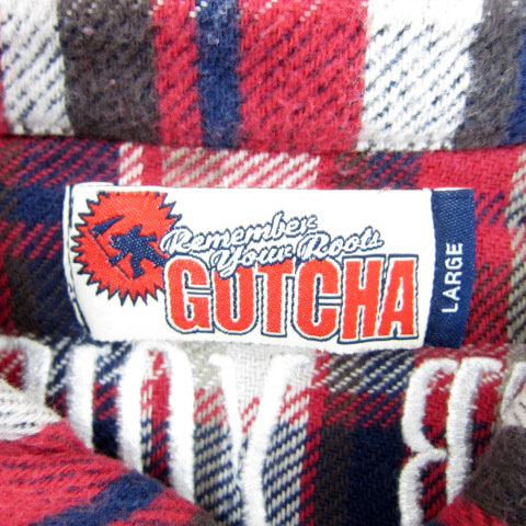 ガッチャ GOTCHA ネルシャツ ウエスタンシャツ 長袖 チェック柄 プリント 刺繍 マルチカラー L 赤 レッド 紺 ネイビー /SY2 メンズ