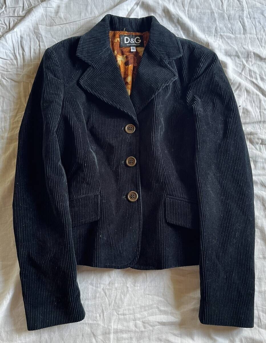 D&G ドルチェ&ガッバーナ レディース ブラック コーデュロイ 高級タイプ ジャケット アウター トップス 24/38