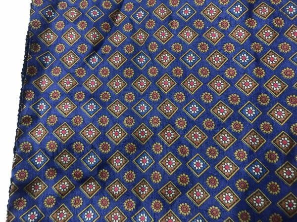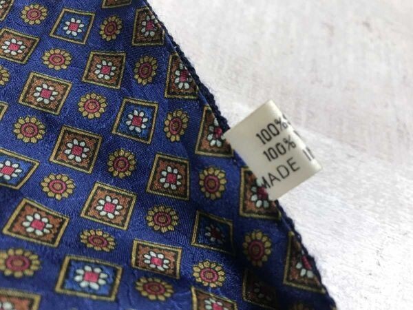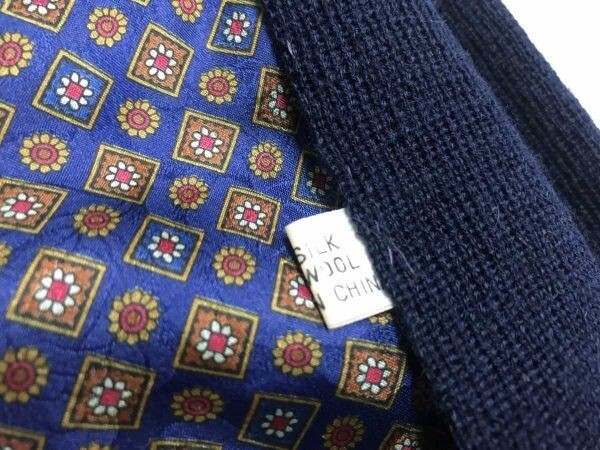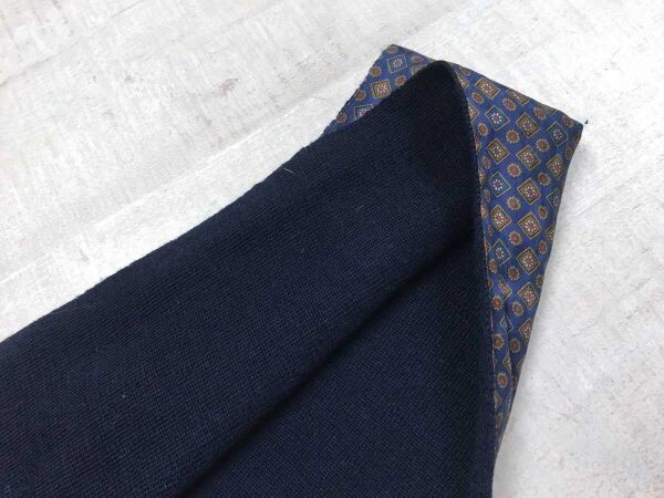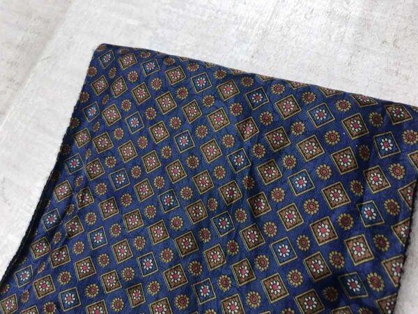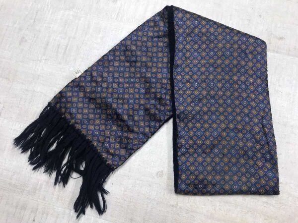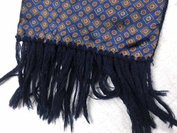 レトロ トラッド クラシック イタリー 英国 モード 花柄 小紋柄 総柄 ダブルフェイス フリンジマフラー メンズ シルク/ウール100% 紺です。