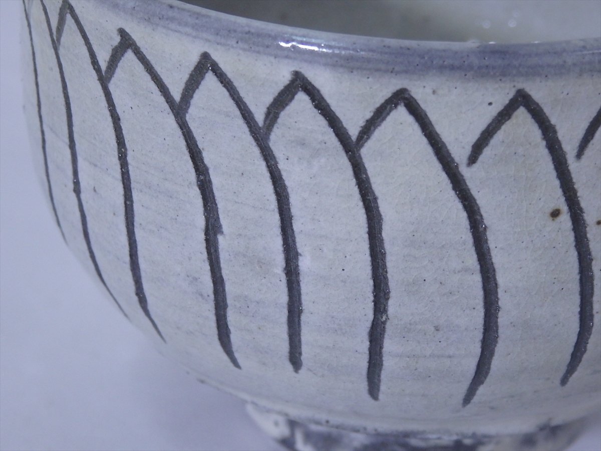 ★状態良好!水野双鶴【瀬戸 粉引茶碗 共箱】重みがあります! 直径12.5cm 高さ9cm 茶道具 茶器