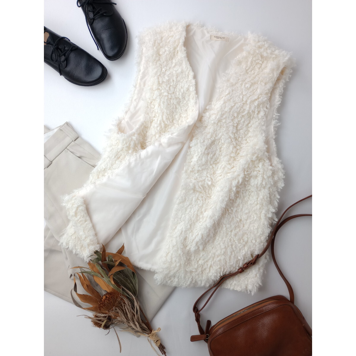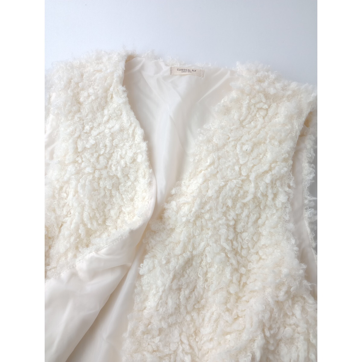 Classical Elf クラシカルエルフ「快適でぬかりない自分になれる」ボリュームプードル フェイクファー ベスト ジレ M ホワイト(EM+0057)★