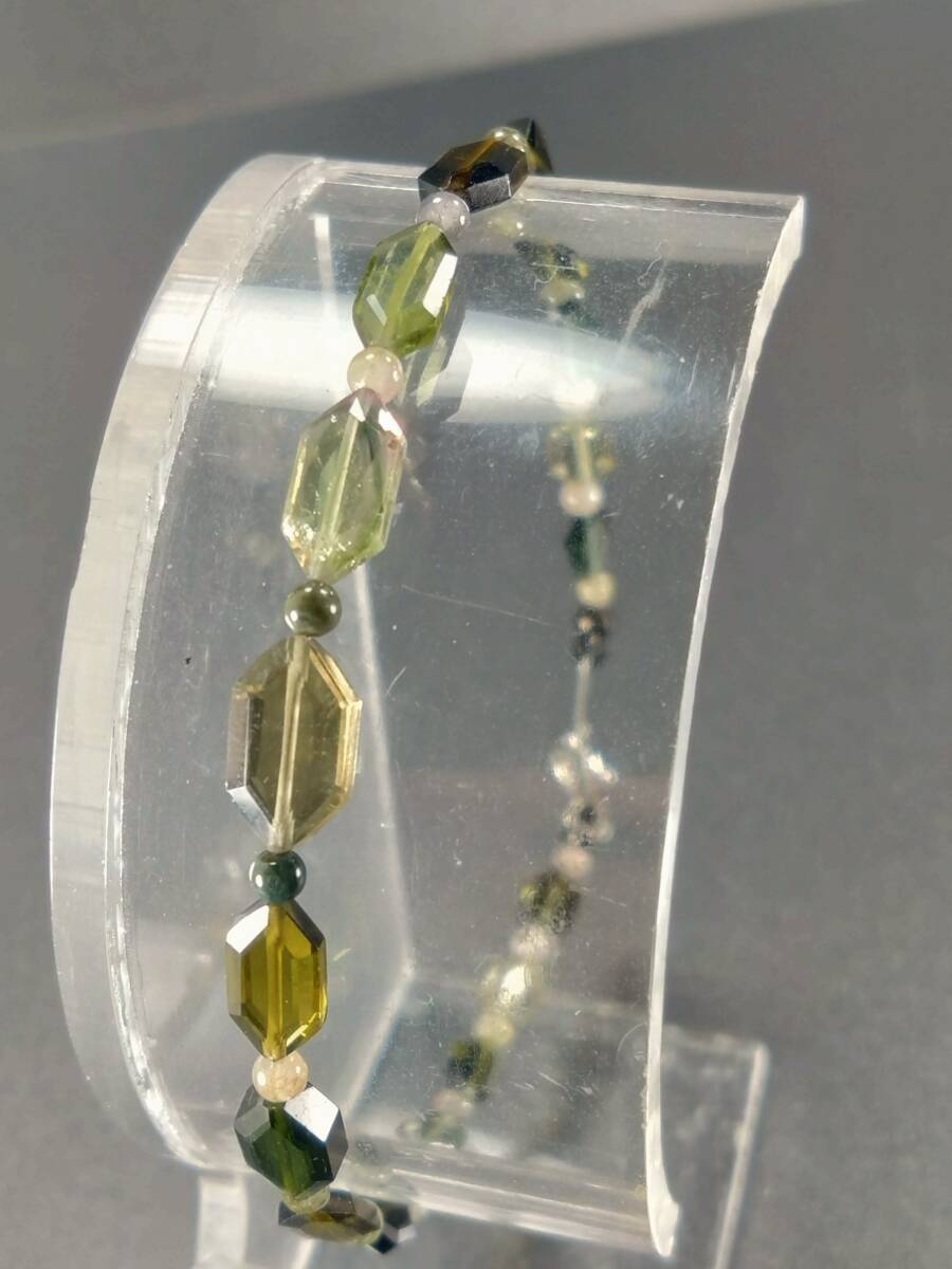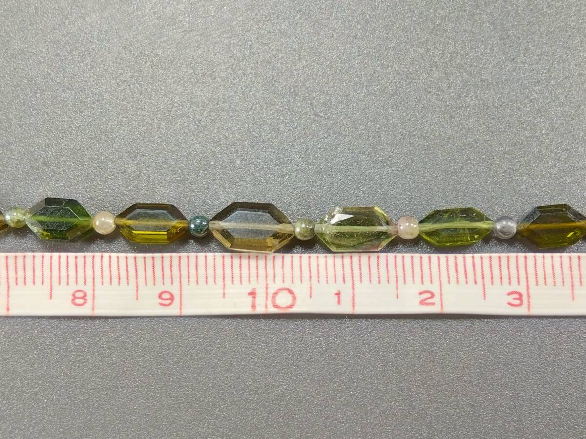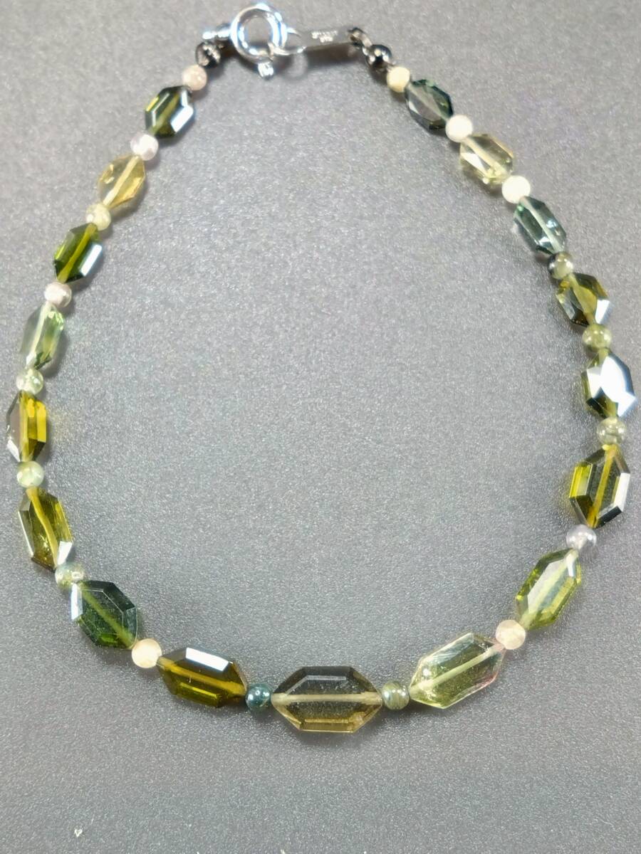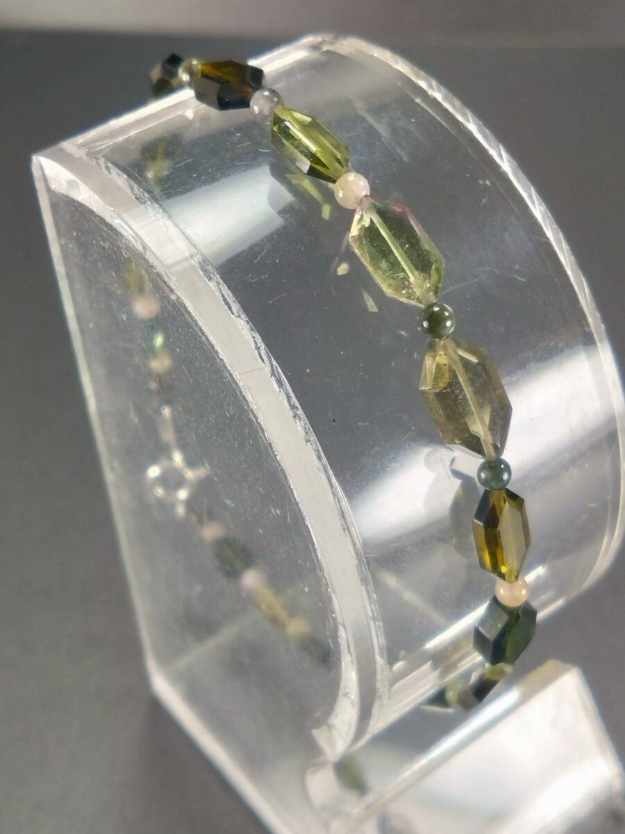大変珍しい六角形型透明マルチカラートルマリン10〜6mm20cmシルバー925引き輪プレート式クラスプ付きブレスレットのご紹介です いろいろな透明グリーントルマリンを中心に集めて大変珍しく手に入りにくいカラーを六角形型のデザインカットに これもまた珍品のベビートルマリンを用いて天然石トルマリンブレスレットを仕上げました もちろん全部トルマリンの新品鉱石を使用して作っていますので安心してご使用出来ます (前オーナーの念は入っていません)