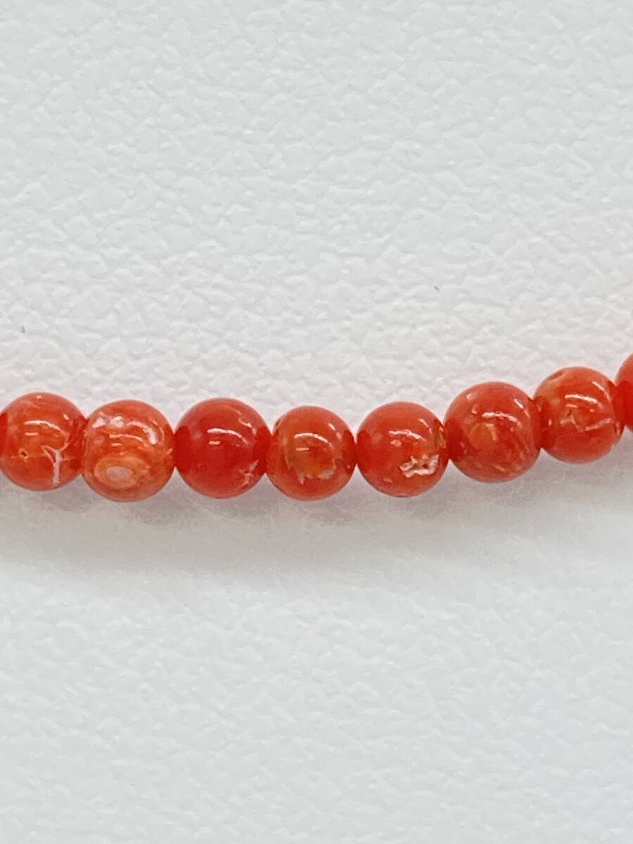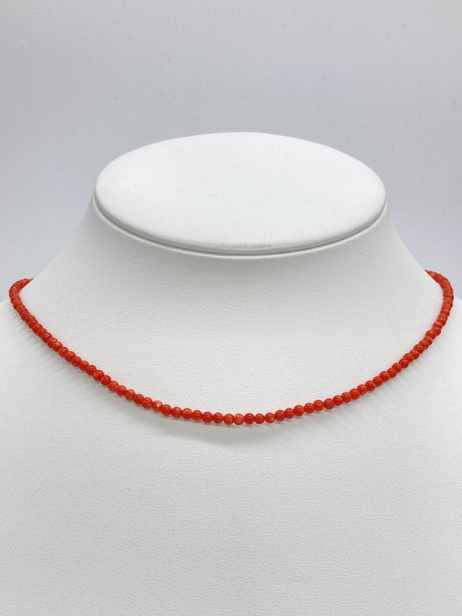 首周り約38cm、重さ約4.4g、サンゴ直径約2.6-3mm。