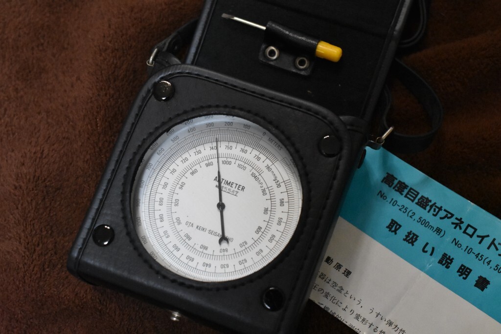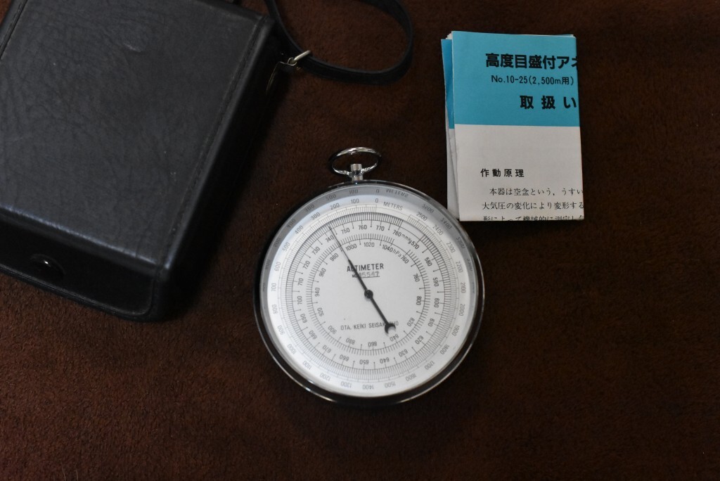 | ●本体、キャリングケース(校正用工具付)、取扱説明書。 ●高度目盛は2500メートルまで。 ●表示部直径約78ミリ ●ケースサイズ約105X90X50ミリ ●外観はスレ少なくきれいです。 <ジャンクの理由> ●一切の動作確認、精度確認をしていません。 | ||