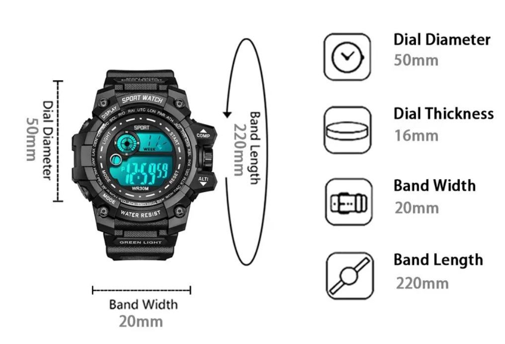 送料無料 未使用品  ブラック デジタルウォッチ メンズ腕時計 スポーツ防水