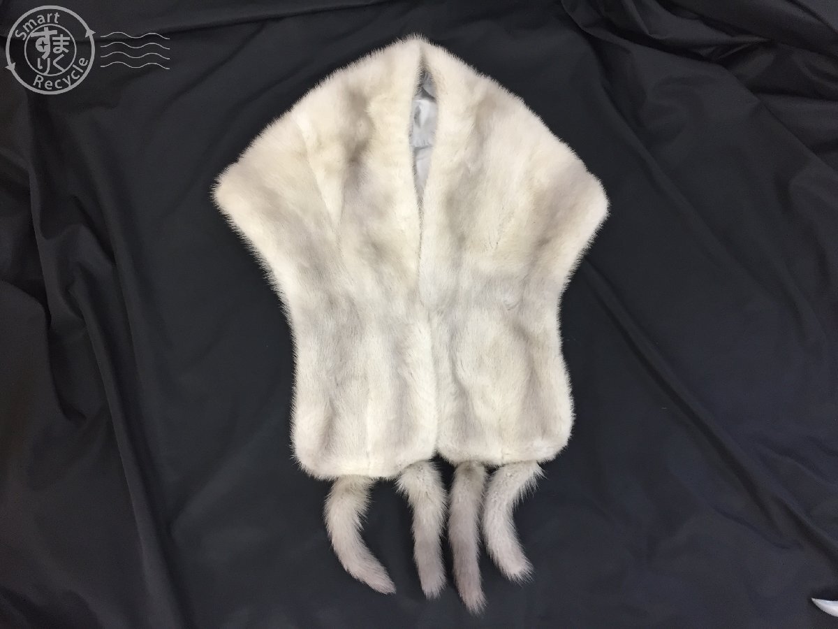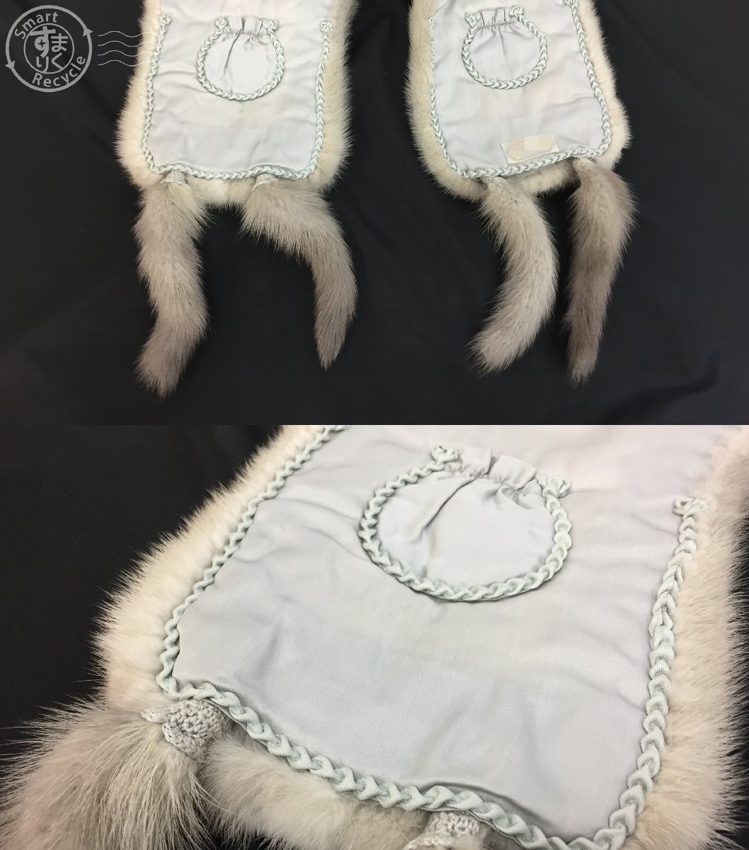 △ 毛皮 ファー ストール ティペット 尻尾 白 ホワイト系 ネーム入り 全長約133cm ファッション 古着 中古品 used品 | |||