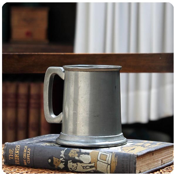イギリスから直輸入した古いピュー ターマグカップ/タンカード。MADE IN ENGLAND刻印あり。