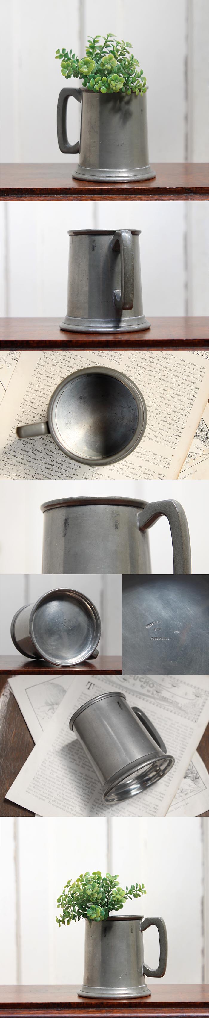 ◆イギリス アンティーク ピューターマグカップ タンカード ビアジョッキ 店舗什器 ディスプレイ インテリア 雑貨 K-782
