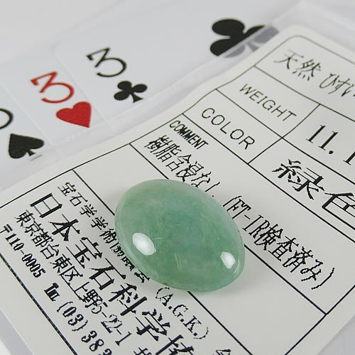 品名 /【SJ】新品 大粒ヒスイ(ジェイダイト)11.12ct ジュエリールース 材質 / 天然ヒスイ(ジェイダイト) 縦・横 / (約)18.3mm 13.1mm 厚さ / (約)5.5mm 総重量 / 11.12ct 日宝協ソーティング付き 【SJ】/ 新品製品 品番 / ACD551 参考小売価格 / 135,000円 |