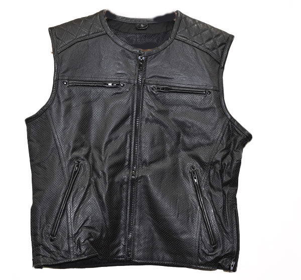秋冬 ハーレーにオススメ★キルティングショルダーVEST・ベスト★なめした柔らかいバッファローレザー★サイズ選択可能