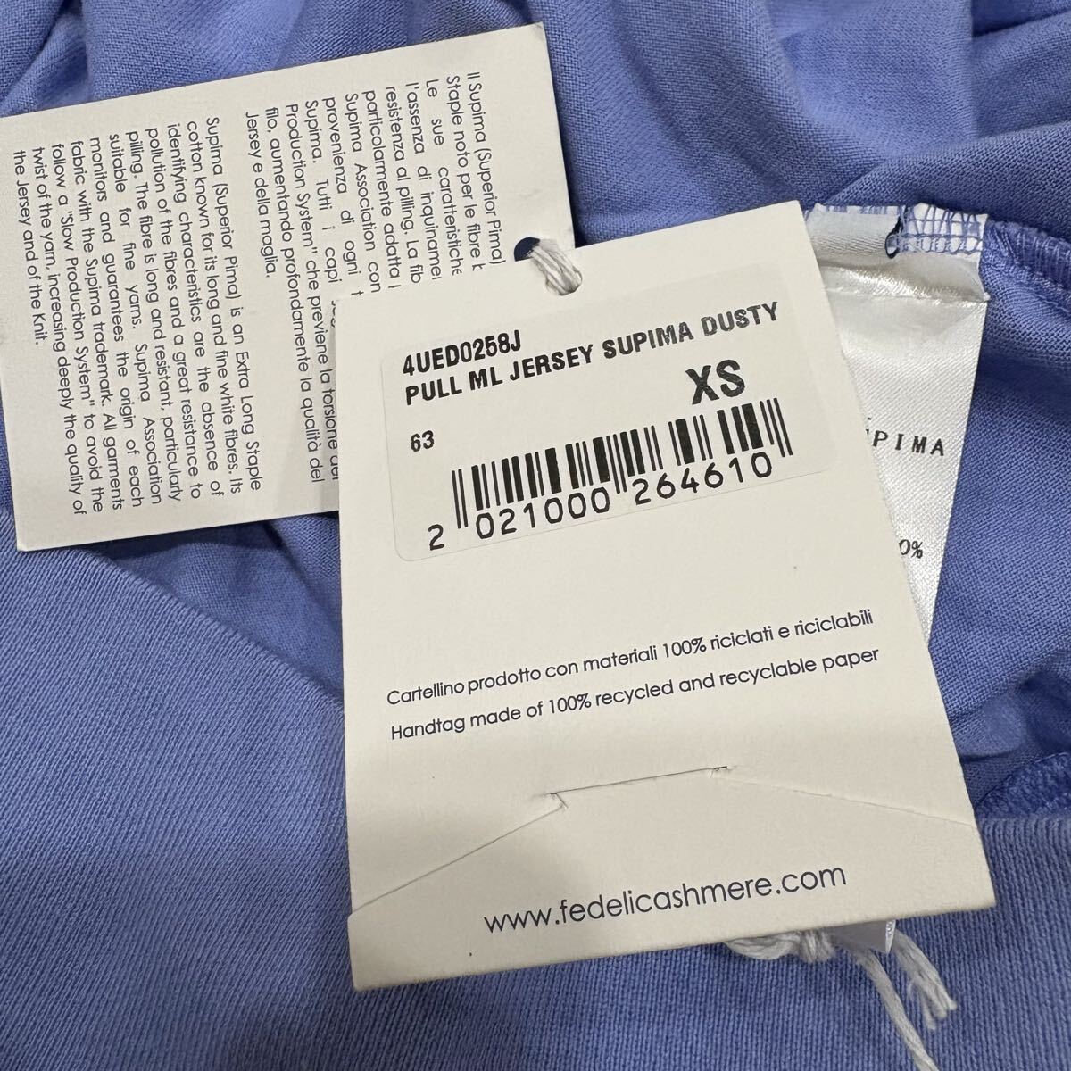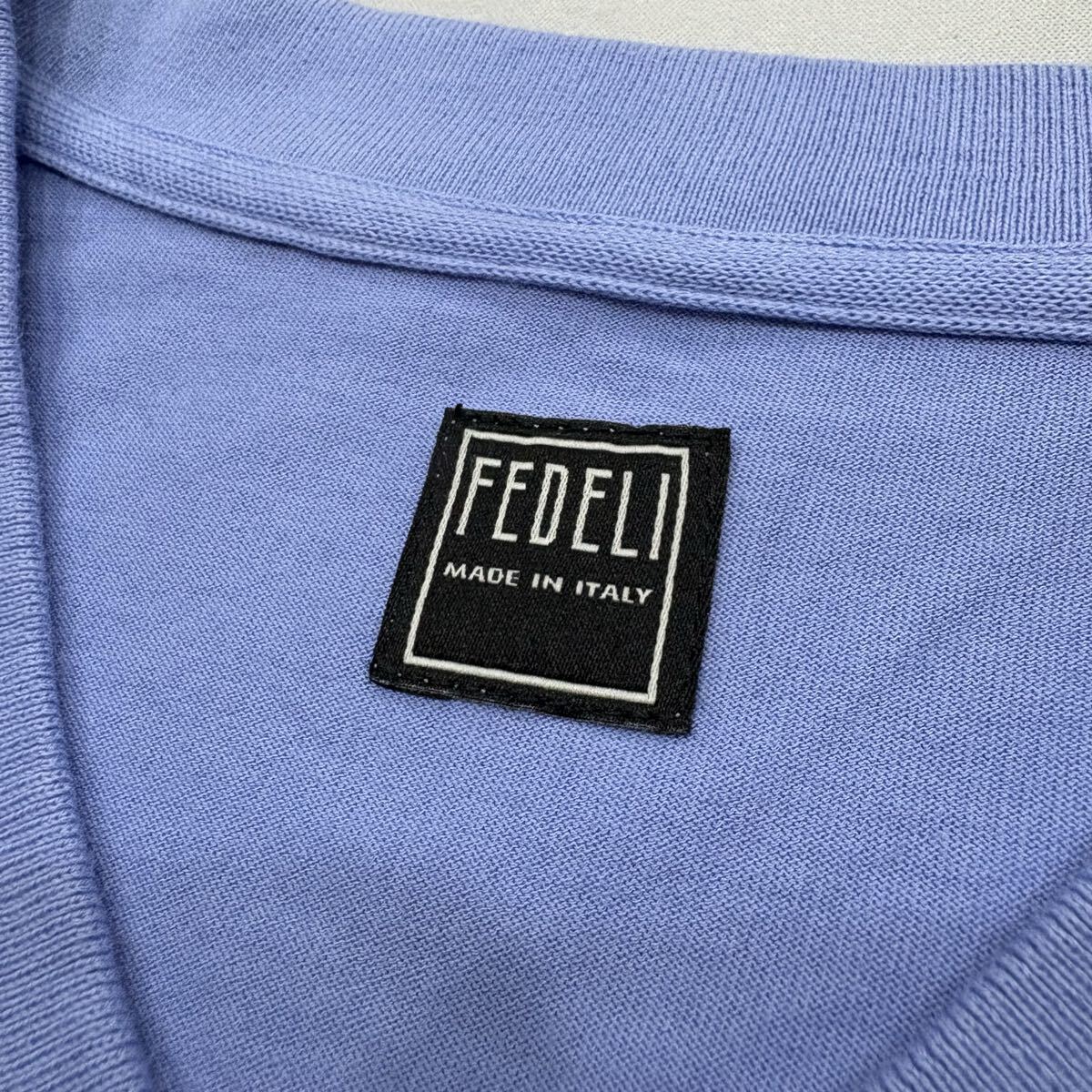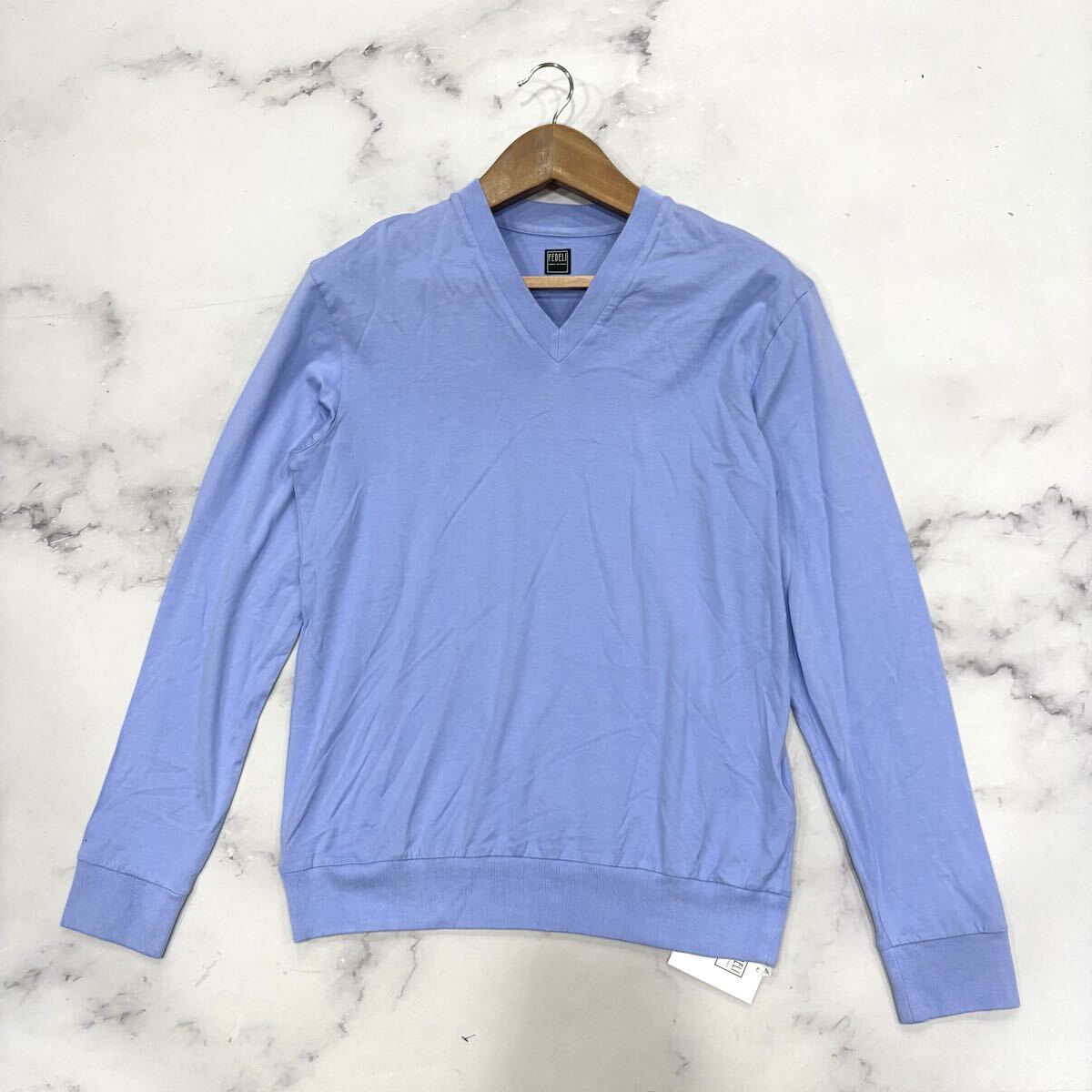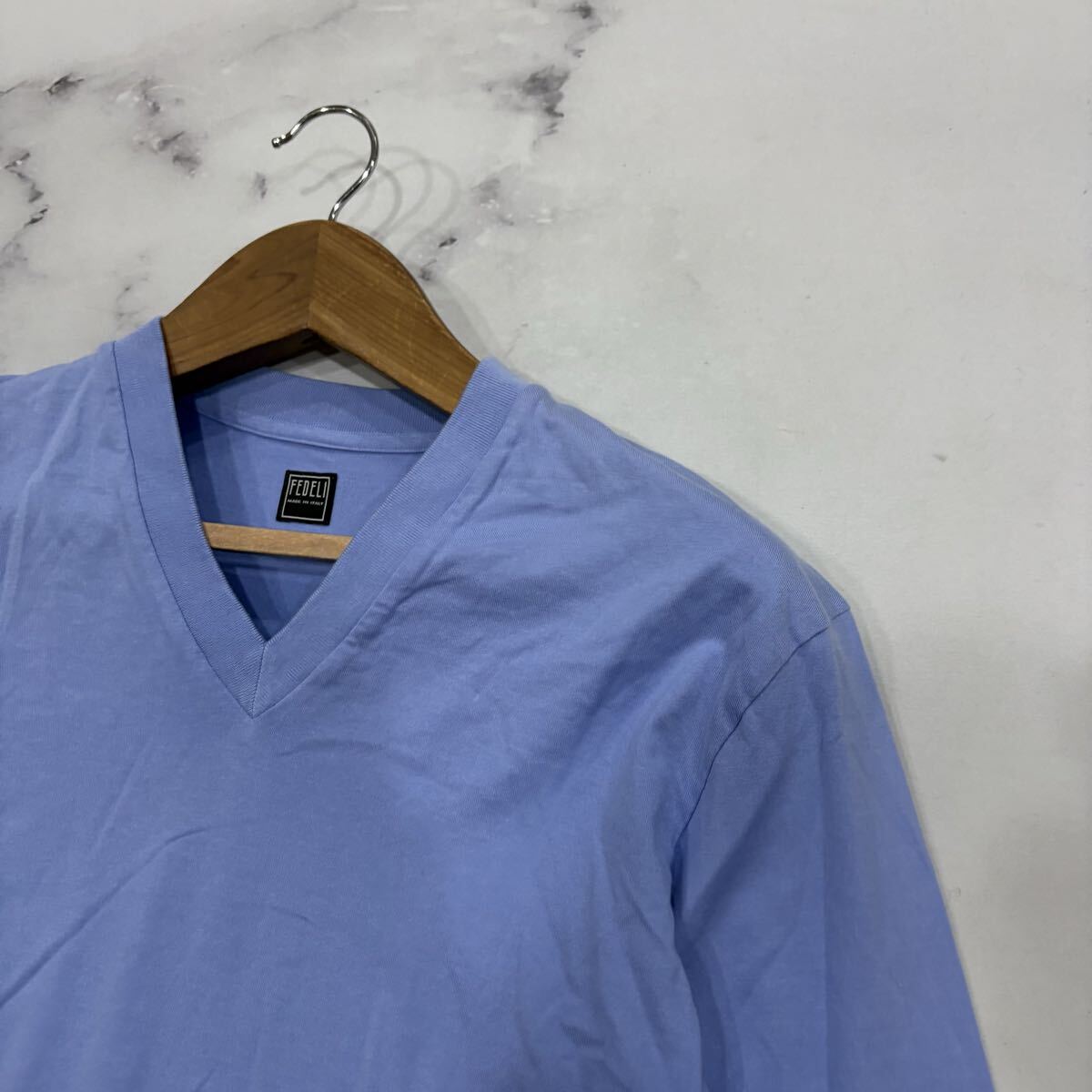 AH ■ 未使用 'イタリア製' 高級感溢れる FEDELI フェデリ 長袖 COTTON100% Vネック Tシャツ カットソー XS メンズ 紳士服 トップス 青系