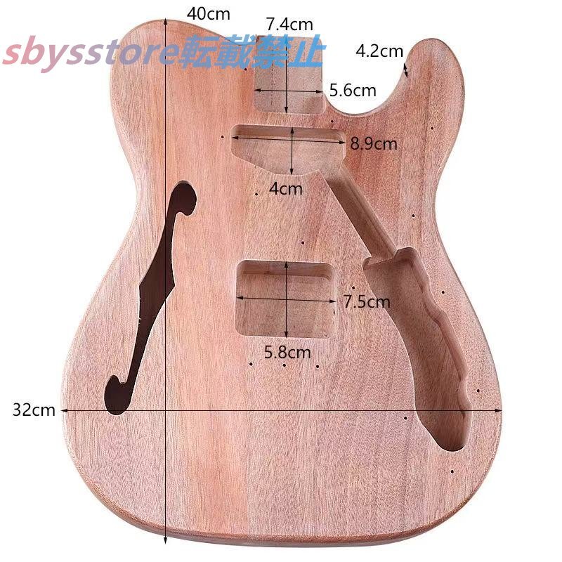 Fホールエレキギターボディ マット仕上げオクメ材 ギター改造DIYパーツ プロ用ギターボディ