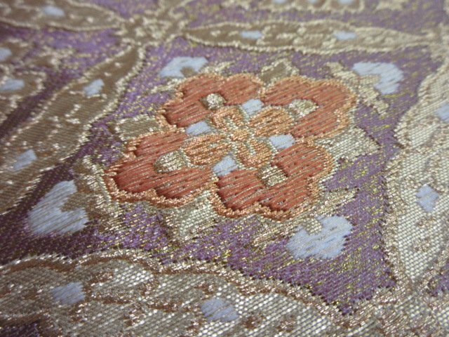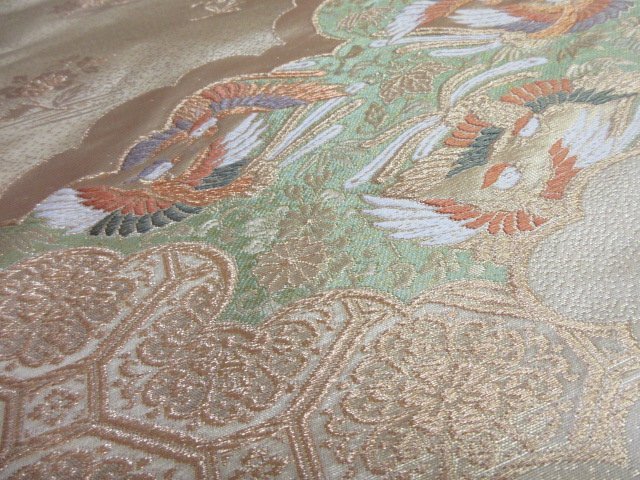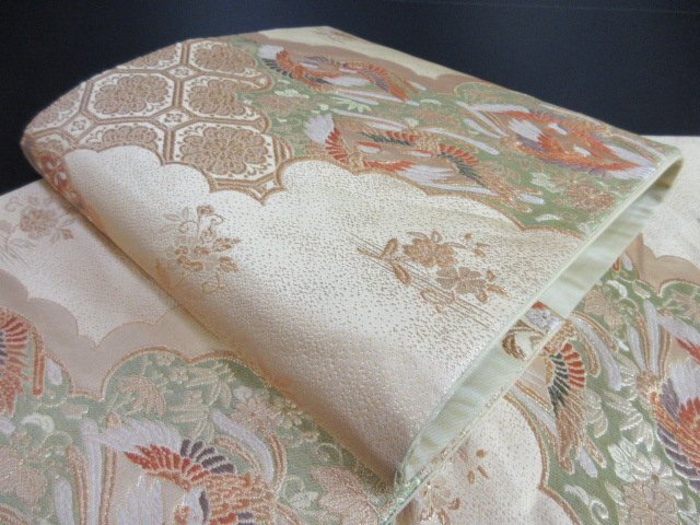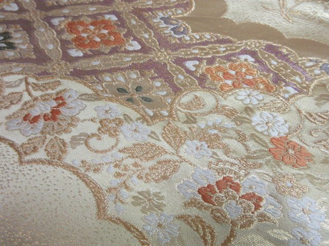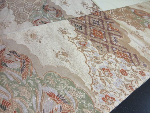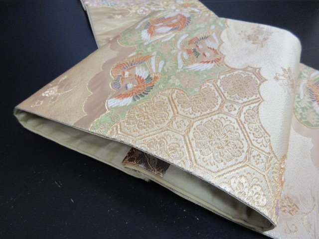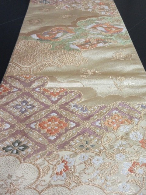 | 商品名 | 1円 良品 袋帯 正絹 和装 和服 菱 雲 向かい鳥 花唐草 草花 蜀江文 お洒落 六通柄 長さ428cm【夢職】★ |