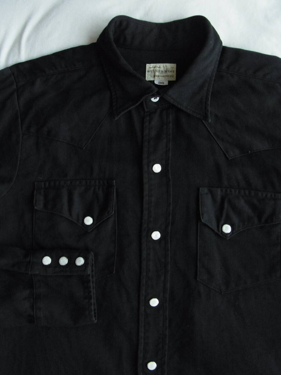WAREHOUSE  ウェアハウス コットンピケ素材 ウエスタンシャツ サイズ 36 日本製 ブラック