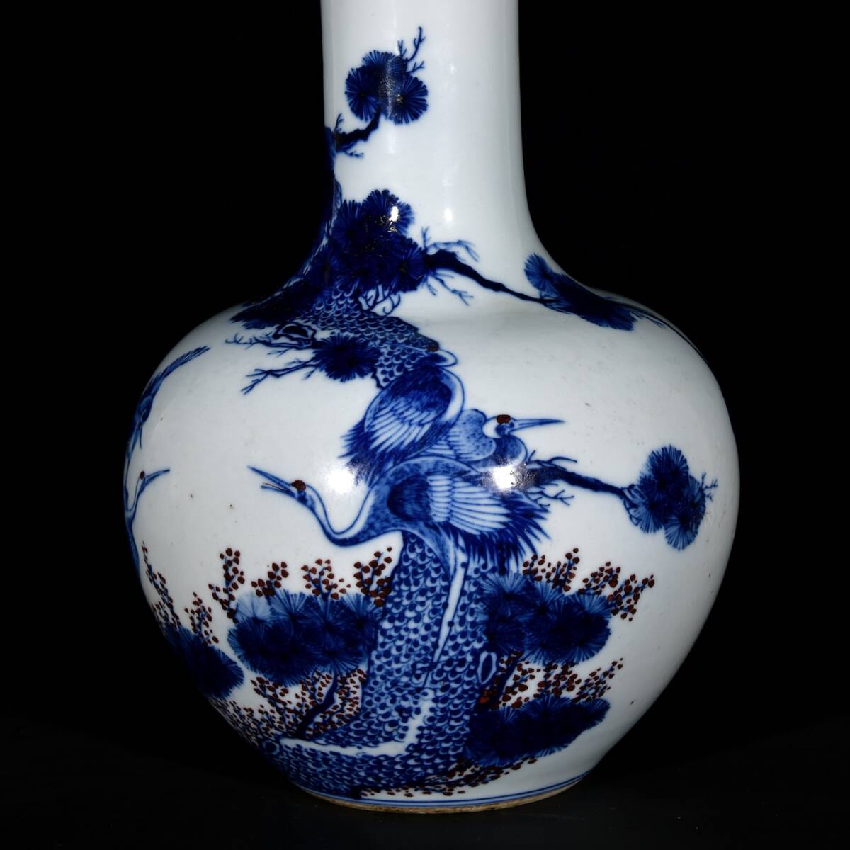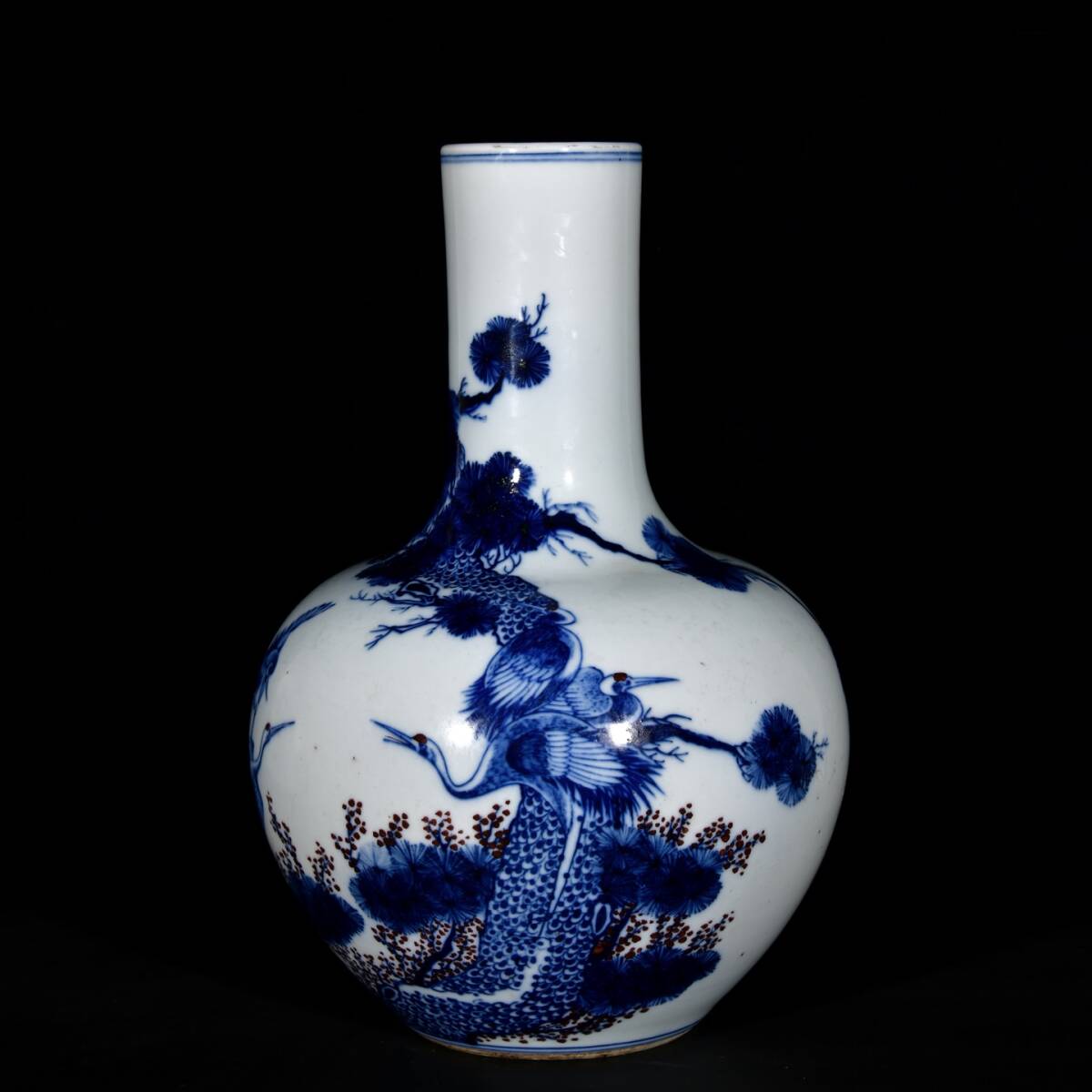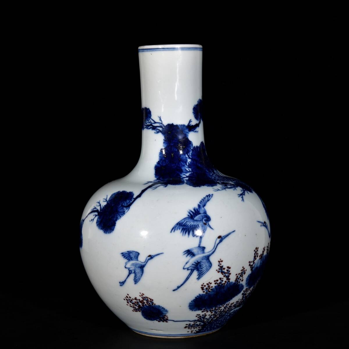 | 人間国宝 古磁器 白磁【清青花釉里紅松鶴延年紋天球瓶】 工芸品 陶芸 磁器 置物 收藏品 時代物 中国美術 | |||