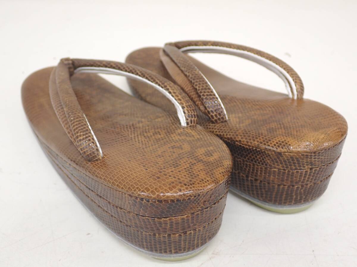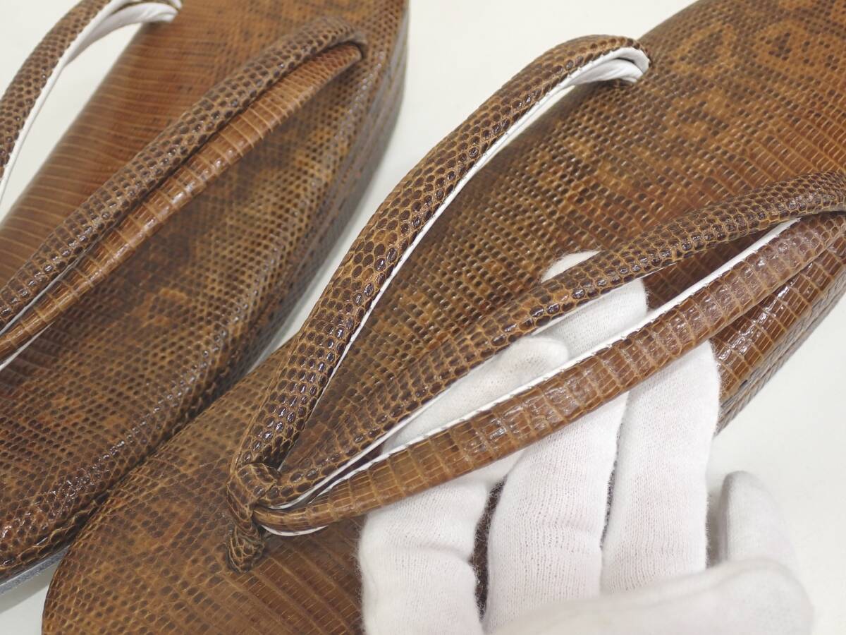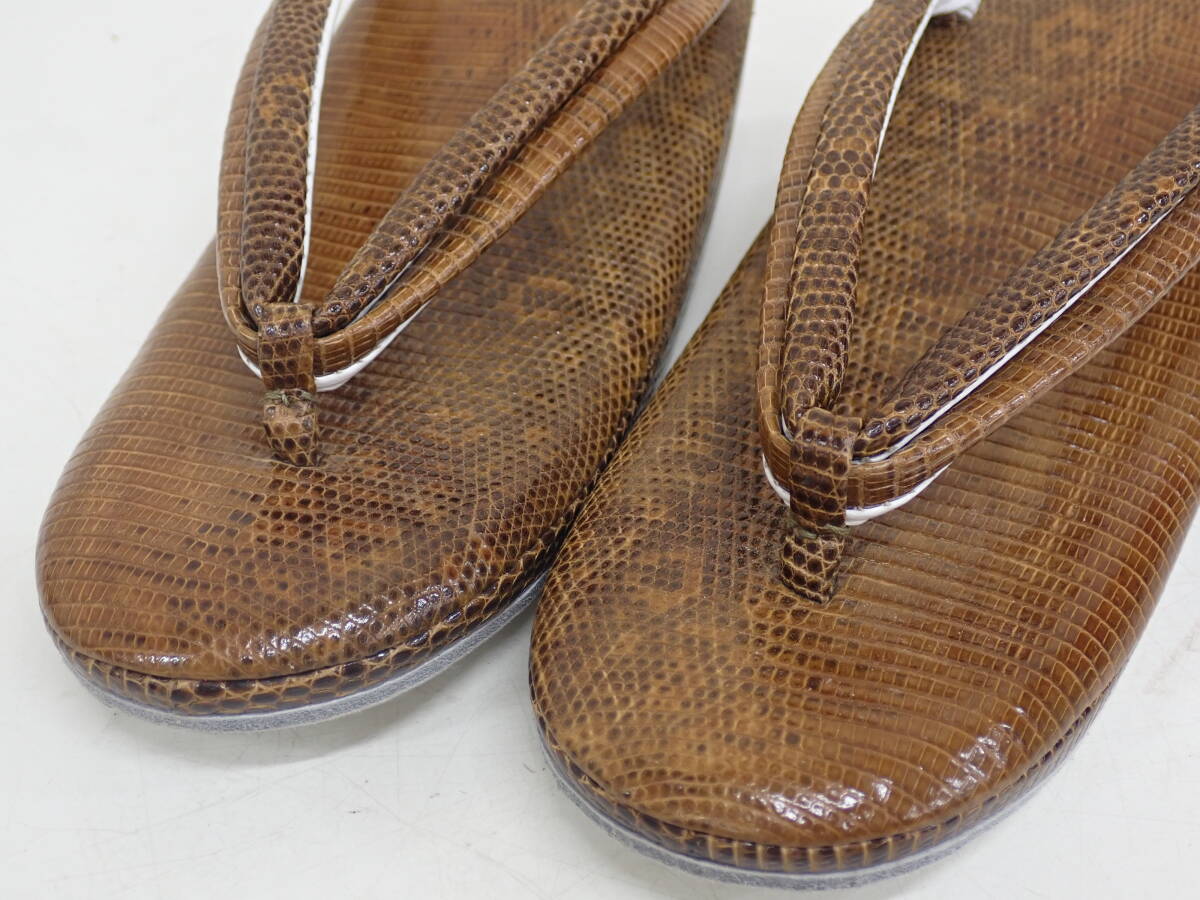 高級 和装小物 希少 リザード 本革 レザー トカゲ まろやかブラウン 23cmほど 和装バッグ 草履 2点セット | ||||