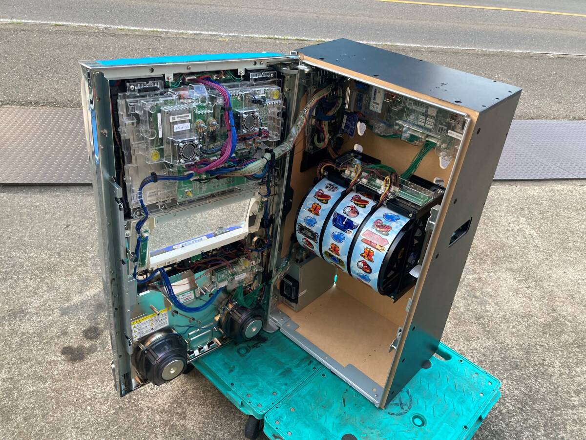 家庭用100(V)電源で即プレイOKです。 ドアキーと設定キーは、1個づつ付属します。 本体寸法(約) : 幅475(mm)×奥行390(mm)×高さ810(mm) 台車は、付属しません。 愛知県一宮市からの出品です。 基本的には、引取り限定でお願いします。 近隣でしたら別途で配達も可能です。 その場合は、事前に質問欄にてお願いします。 | ||||