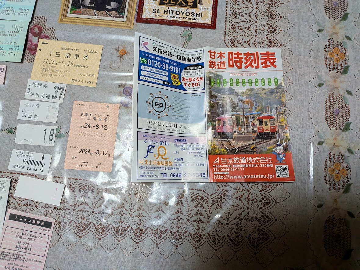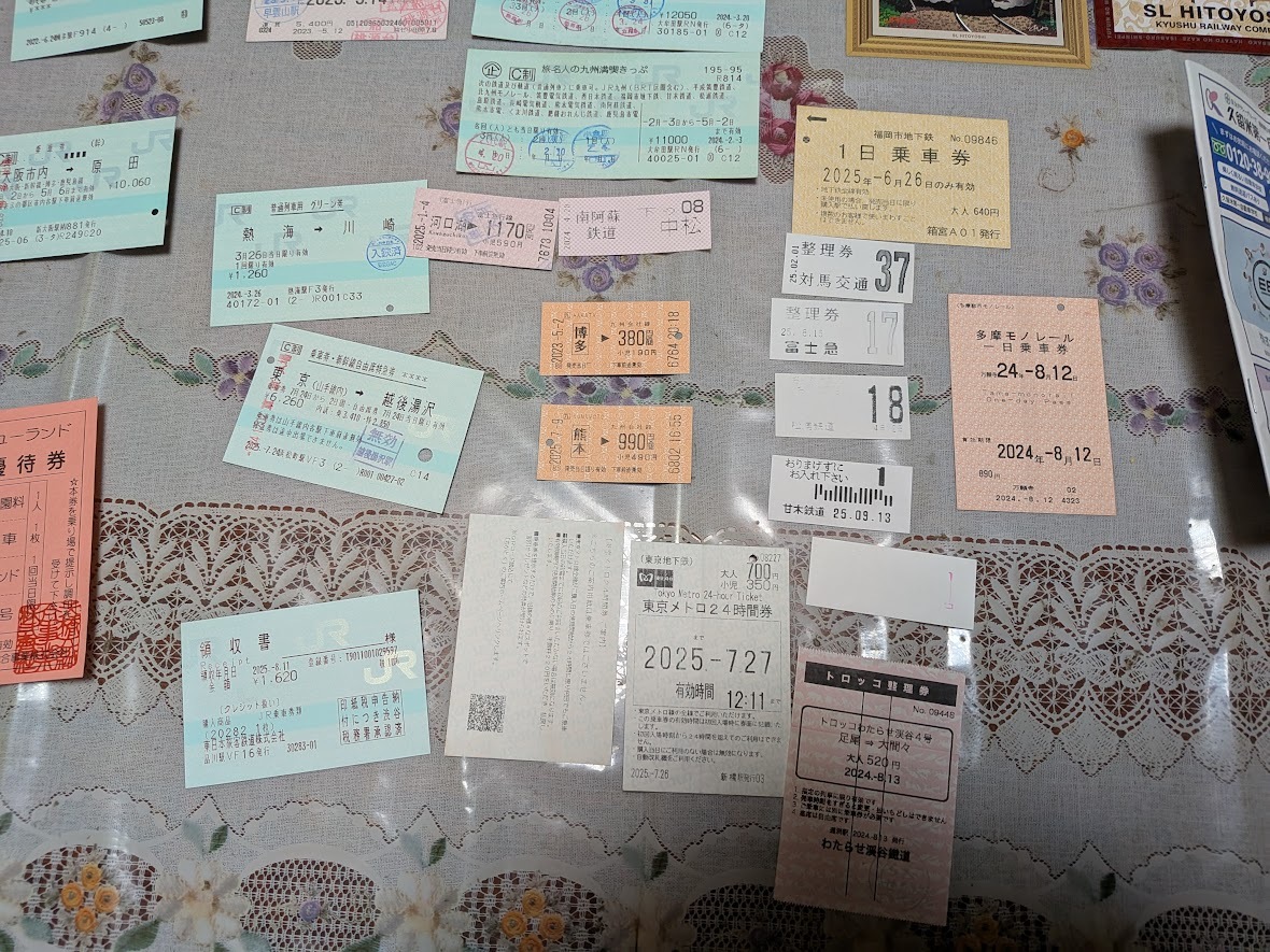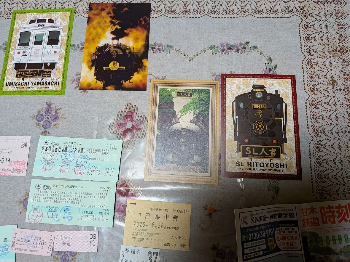 「SL人吉」「SL山口」「海幸山幸」記念乗車券・備後落合駅☆南阿蘇鉄道☆富士急行・対馬交通・甘木鉄道・松浦鉄道・天橋立等いろいろ39種・熊本・博多・ふじやま温泉・甘木鉄道時刻表・立山高原ホテル・那智山線時刻表・立山黒部アルペンルート時刻表・富士吉田忍野山中湖周遊バスガイドマップ・富獄三十六景・湯沢シャトルバス・吹上荘・のぞみ2号・大阪市原田・東日本領収書・東京越後湯沢・熱海川崎・箱根フリーパス・東京メトロ・トロッコわたらせ鐡道・多摩モノレール・福岡市地下鉄1日乗車券・旅名人の九州満喫切符・青春18きっぷ