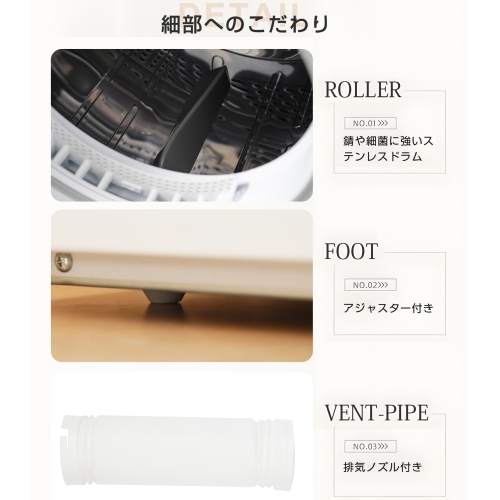 • 3.【4つ乾燥プログラムを選択できます】強力乾燥、標準乾燥、ミックス乾燥、送風乾燥という多彩なプログラムが用意されています。それぞれのプログラムは異なるニーズに対応し、衣類の状態や素材に適した乾燥設定を提供します。